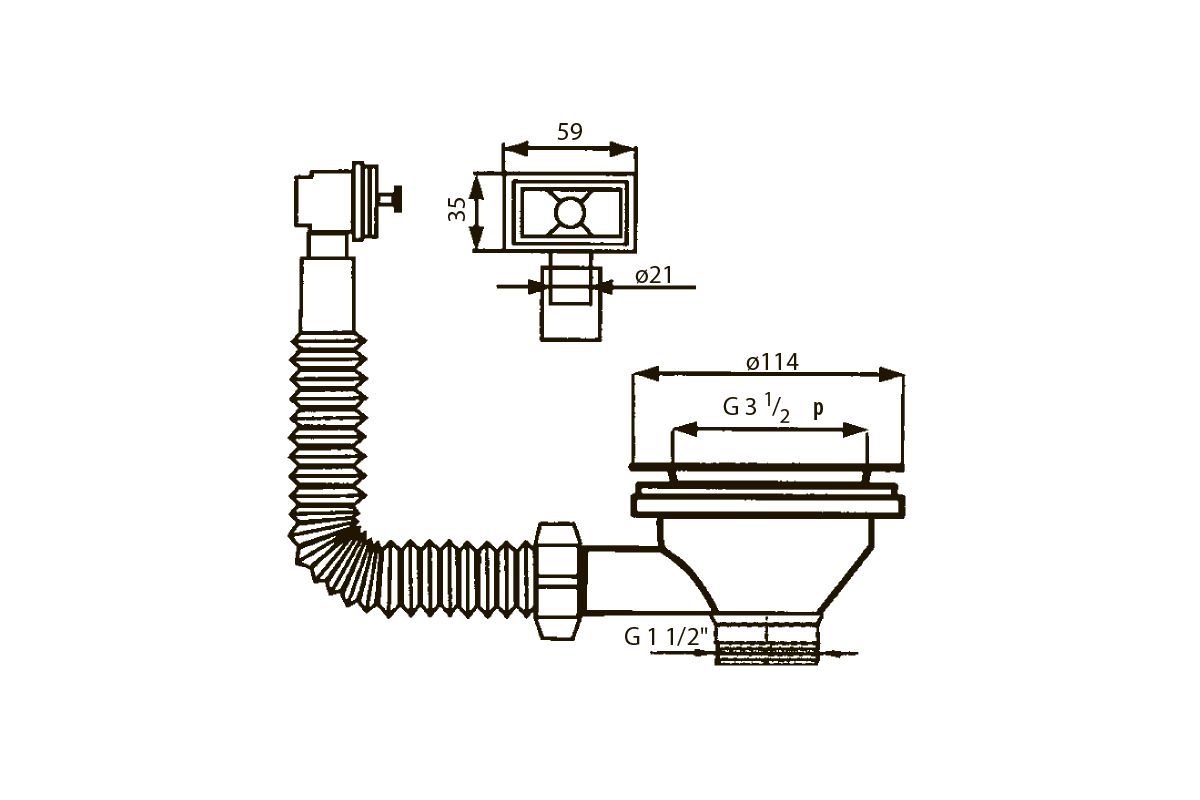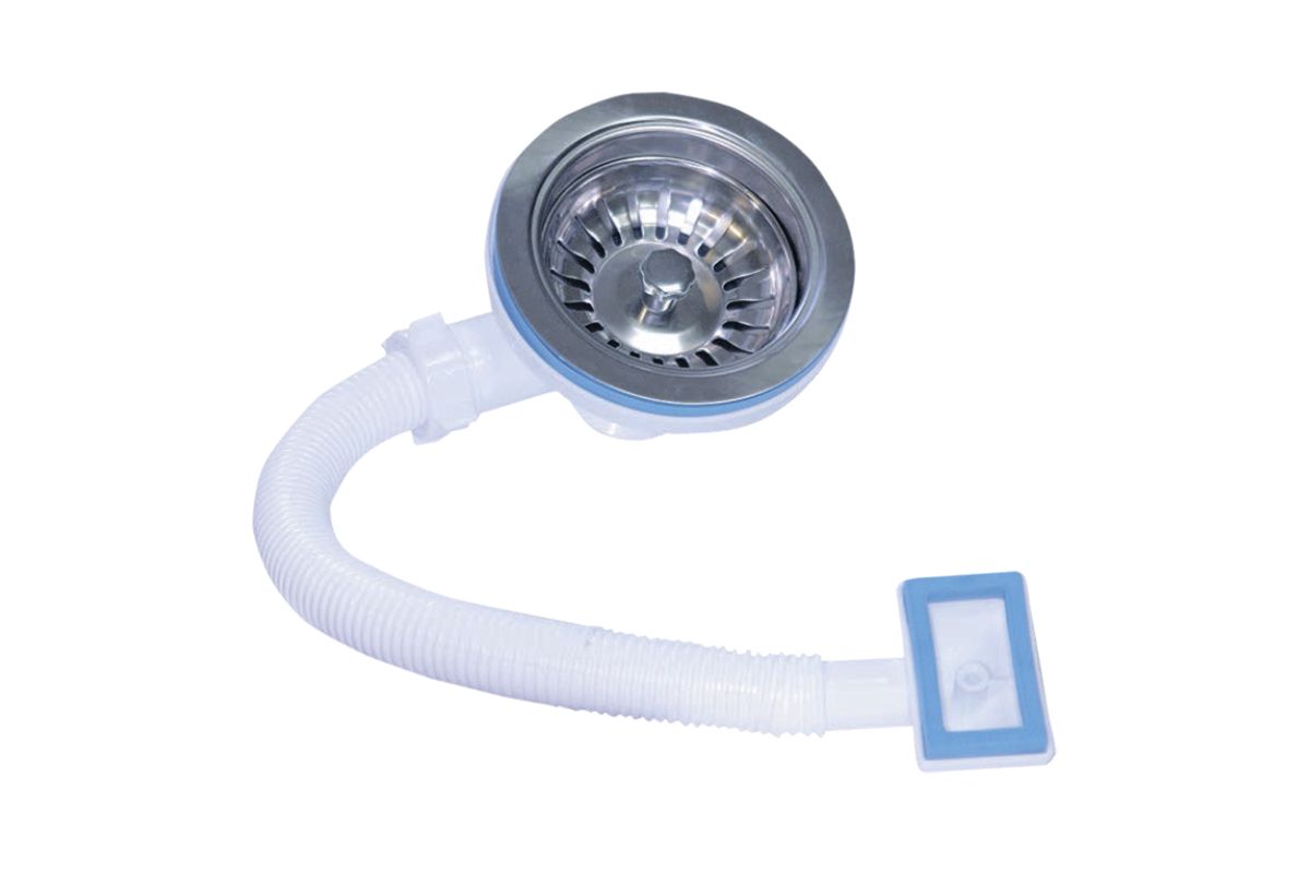 Выпуск 3 1/2'' с переливом, полипропилен, для кухонной мойки. В комплекте: корзина из нержавеющей стали, 2 прокладки (для установки на прямоугольную или круглую чашу).