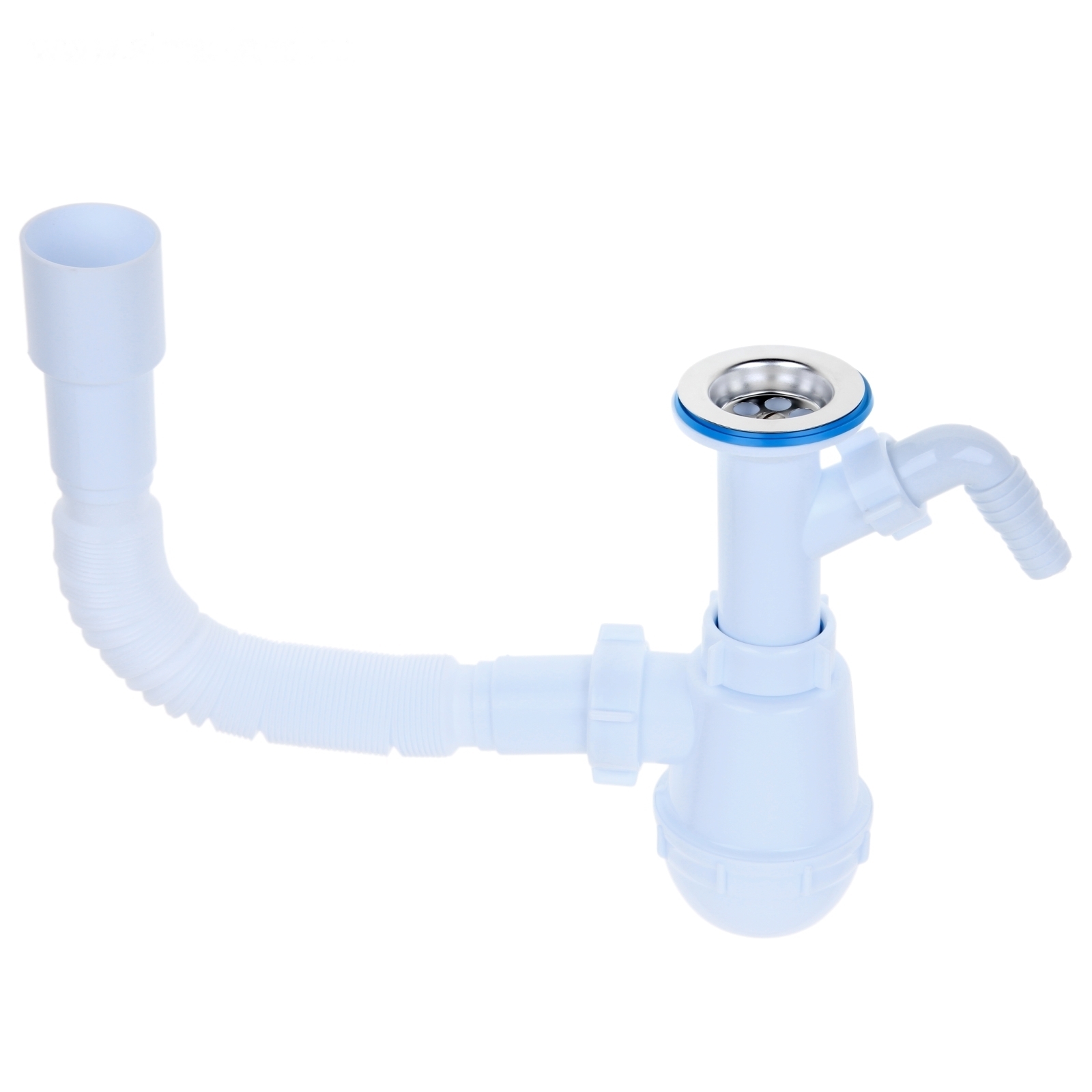 Если вы собираетесь менять элементы канализации и слив, идеальный вариант — комплект для раковины с отводом стиральной машины. Гофрированный сифон блокирует неприятные запахи из канализации. В трубе всегда есть небольшое количество воды, которая и предотвращает появление неприятных запахов.