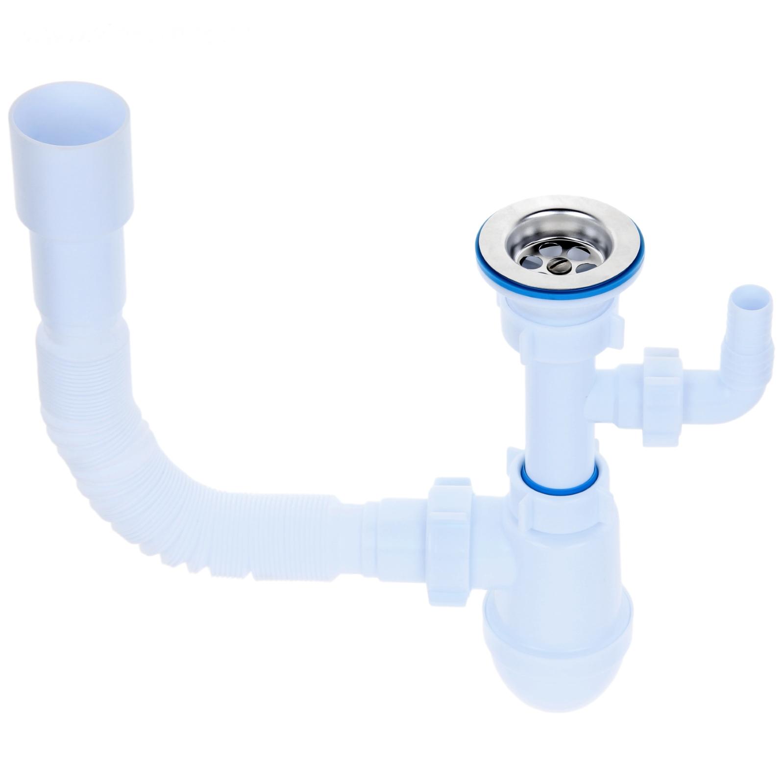 Если вы собираетесь менять элементы канализации и слив, идеальный вариант — комплект для раковины с отводом стиральной машины. Гофрированный сифон блокирует неприятные запахи из канализации. В трубе всегда есть небольшое количество воды, которая и предотвращает появление неприятных запахов.