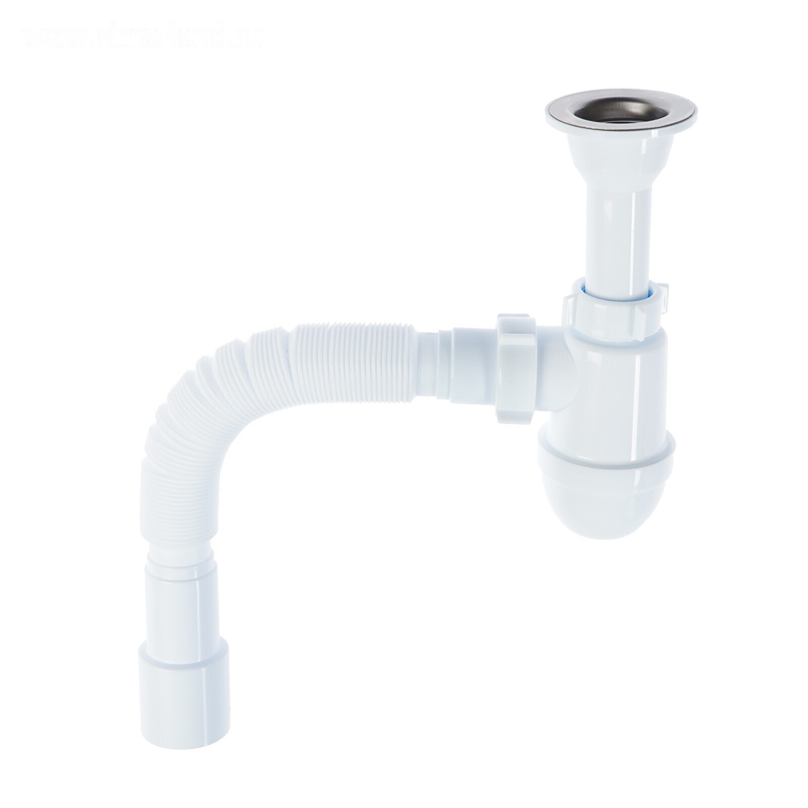 Сифон бутылочного типа предназначен для кухонной мойки с диаметром сливного отверстия 50 мм.