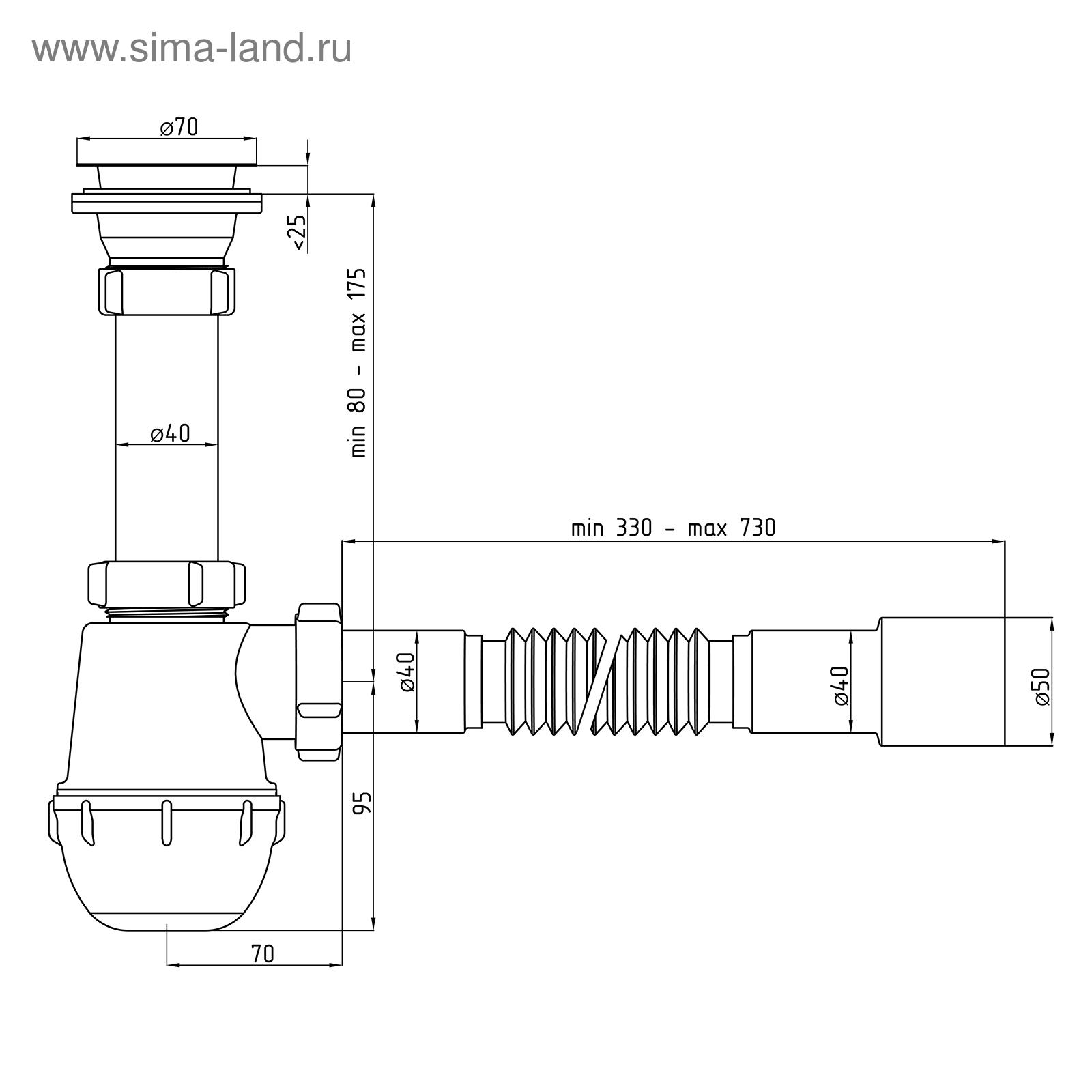 Сифон "АНИ Пласт" A0115, 1 1/2" х 40 мм с гибкой трубой 40 x 40/50 мм