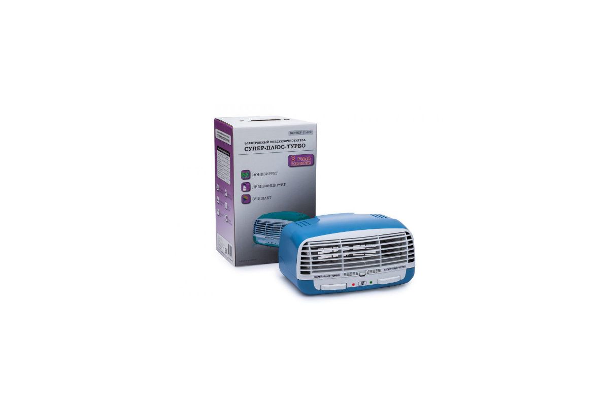 - Ионизатор воздуха имеет современный дизайн и при работе производит совсем низкий уровень шума. Также ионизатор воздуха СУПЕР ПЛЮС ТУРБО обладает новой более удобной конструкцией в эксплуатации как самого прибора, так и осадительной кассеты.