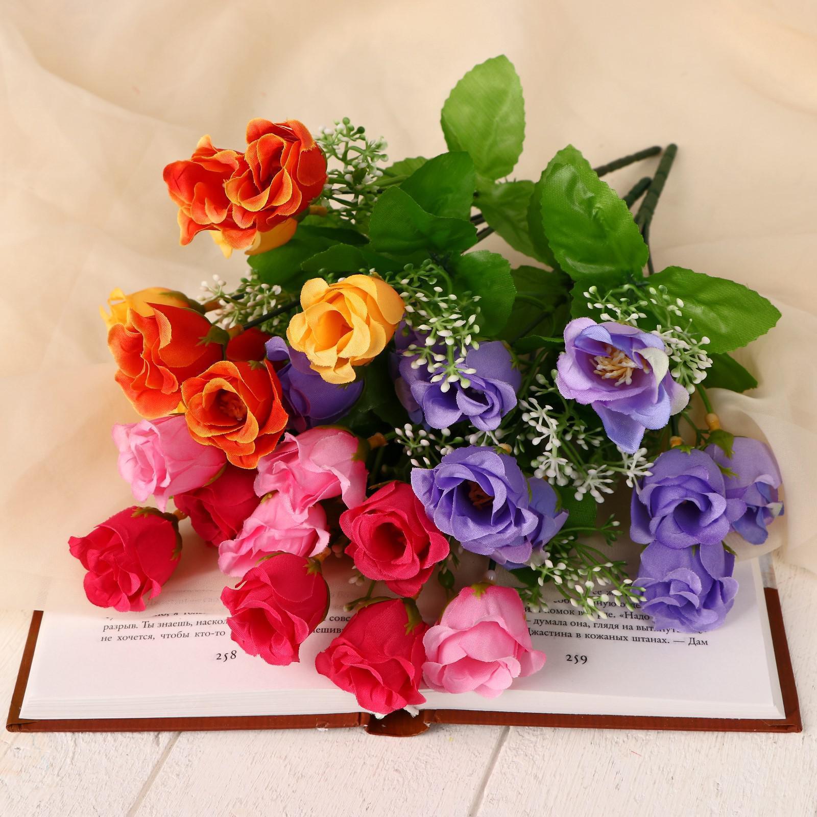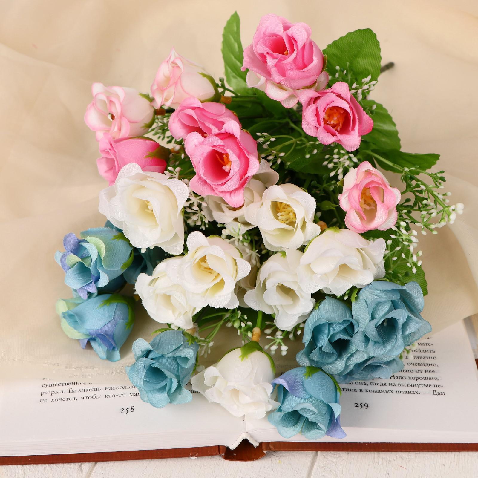 Букет "Розочки с белыми цветочками" 30 см, (размер бутона=3х3см) микс