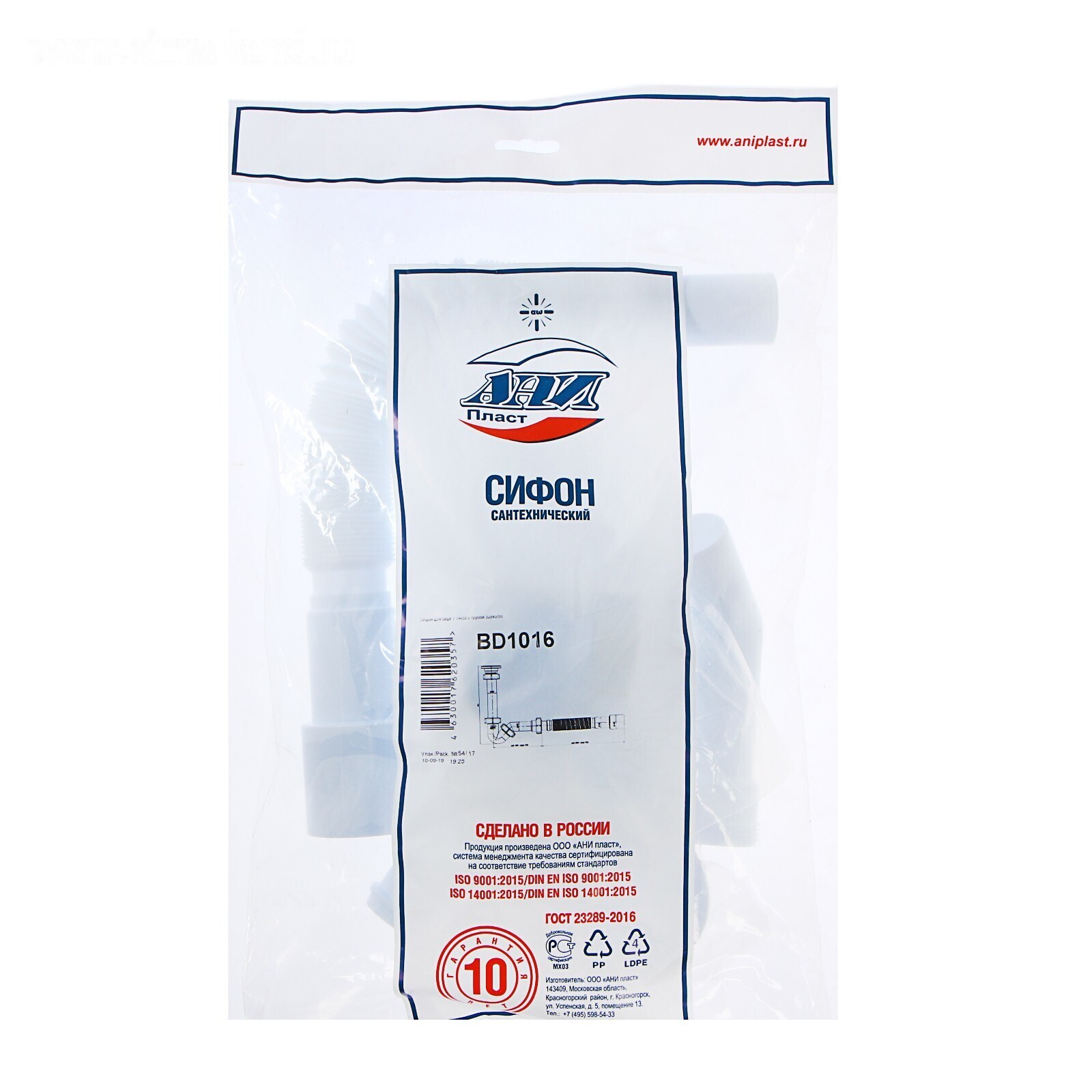 Сифон "АНИ Пласт" BD1016, 1 1/4" х 32 мм, 32 х 32/50 мм, для биде, с трубой
