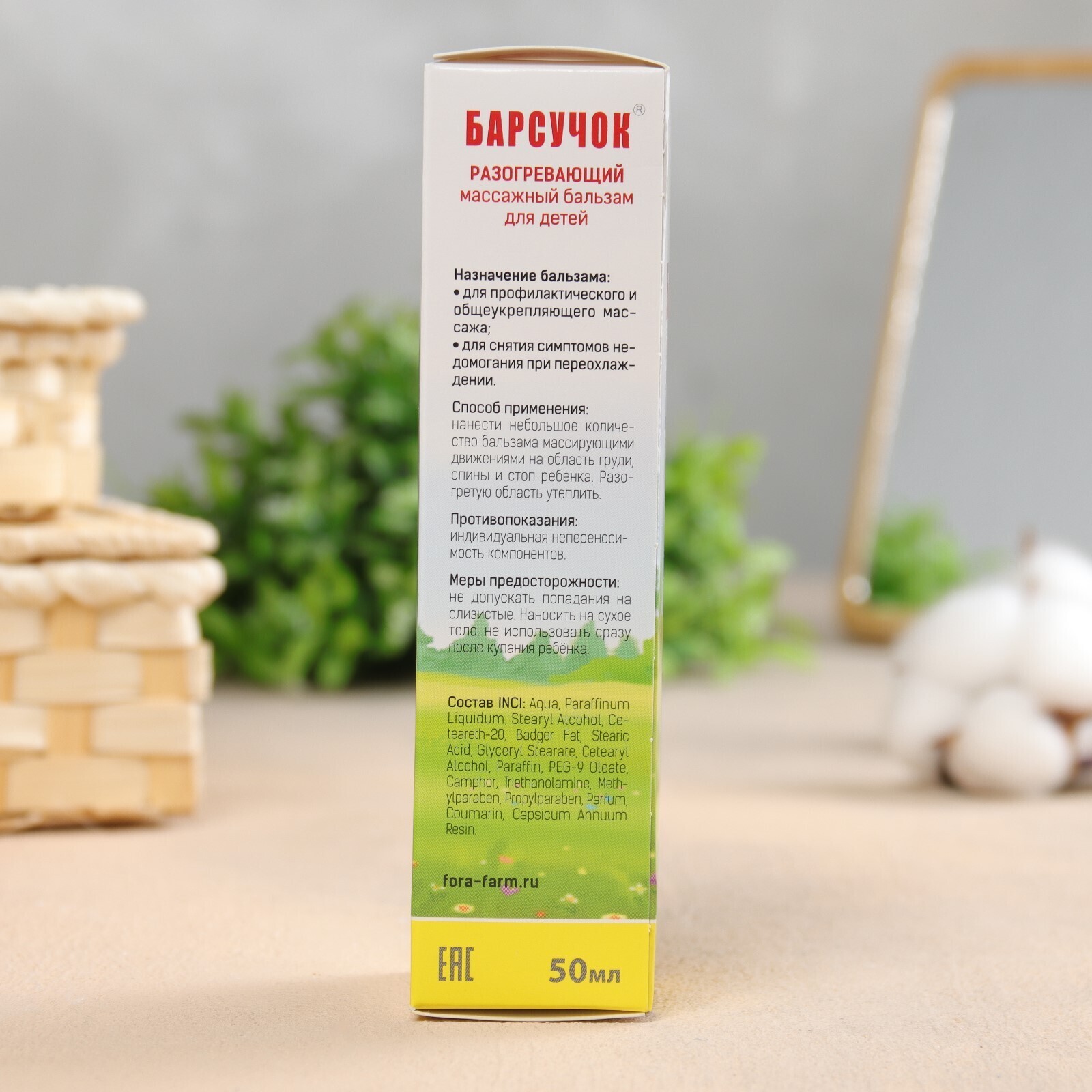Бальзам, созданный на основе натурального барсучьего, обеспечивает мягкое глубокое прогревание мышц и длительное сохранение тепла, что помогает ускорить выздоровление ребенка при простуде и сократить проявление ее симптомов. Активизирует микроциркуляцию крови. Насыщает витаминами А, В2, В5, В6, В12, K, PP и микроэлементами.