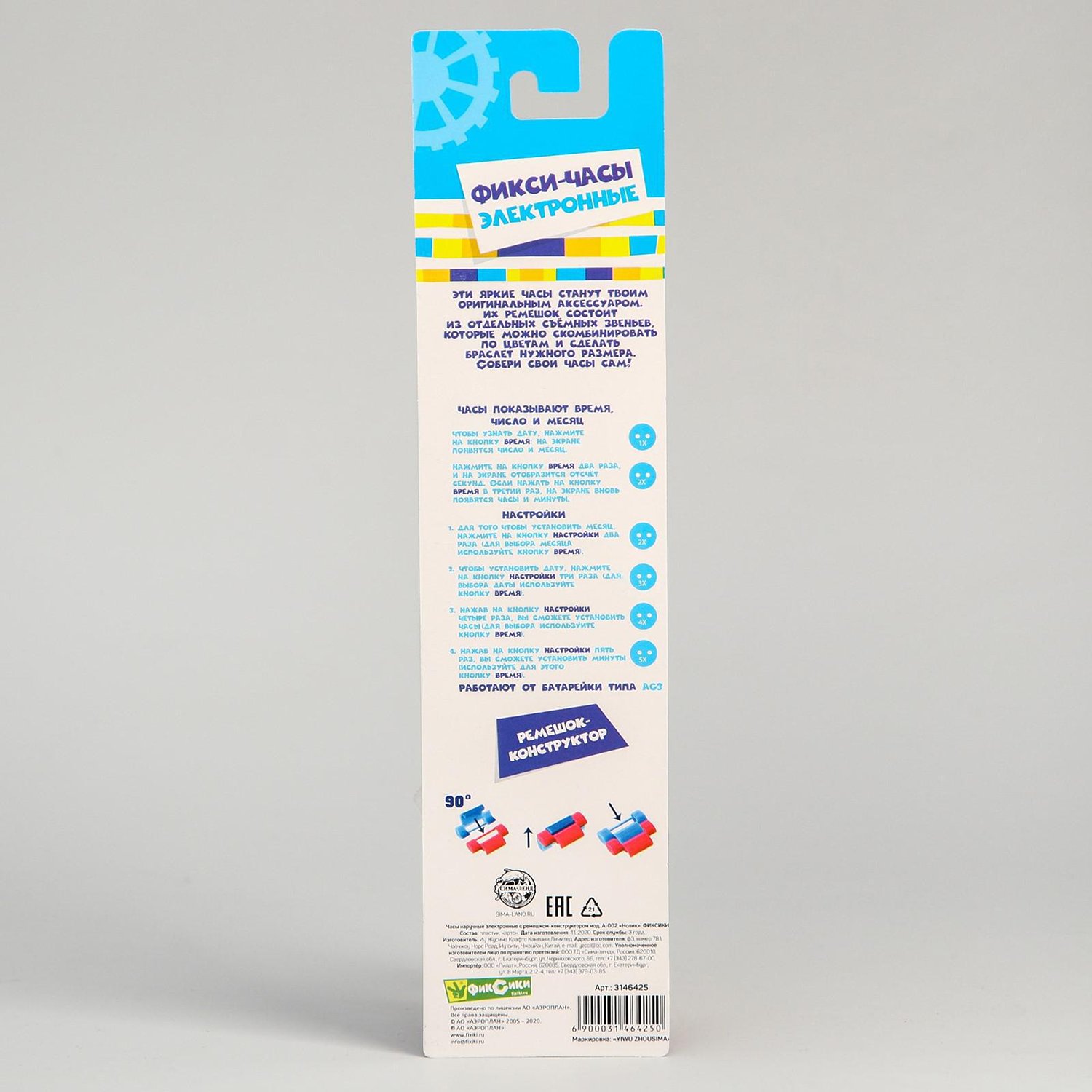 Часы наручные электронные Фиксики Нолик с ремешком-конструктором 3146425