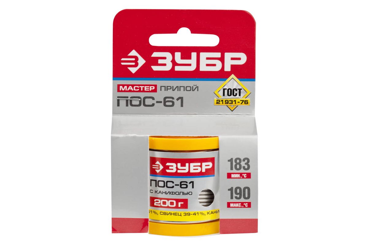 Припой ЗУБР 55450-200-20C ПОС 61 трубка с канифолью 200г 2мм