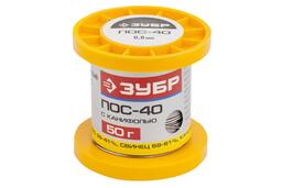 Припой ПОС 40 с канифолью ЗУБР 55451-050-08C, 50г 0.8мм