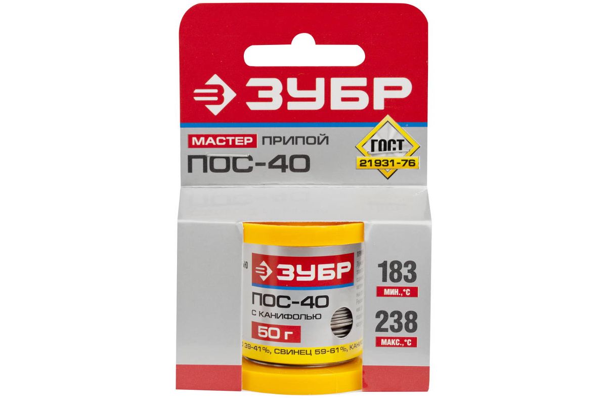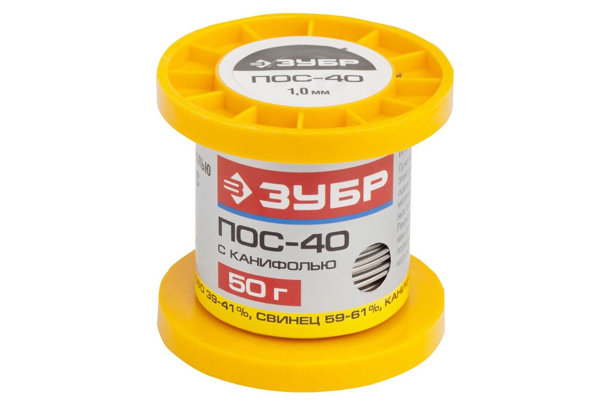 Припой ПОС 40 с канифолью ЗУБР 55451-050-10C, 50г 1мм