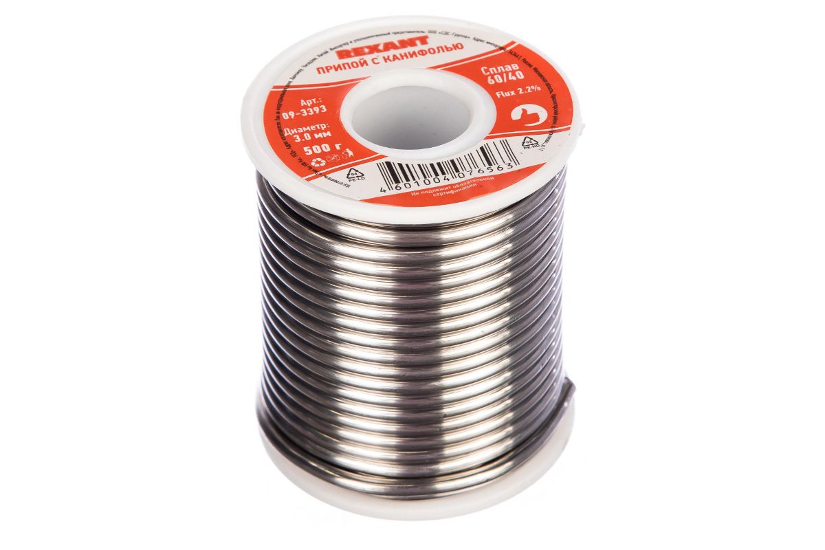Припой с канифолью REXANT 09-3393 500 г, D 3.0 мм, (олово 60%, свинец 40%), катушка