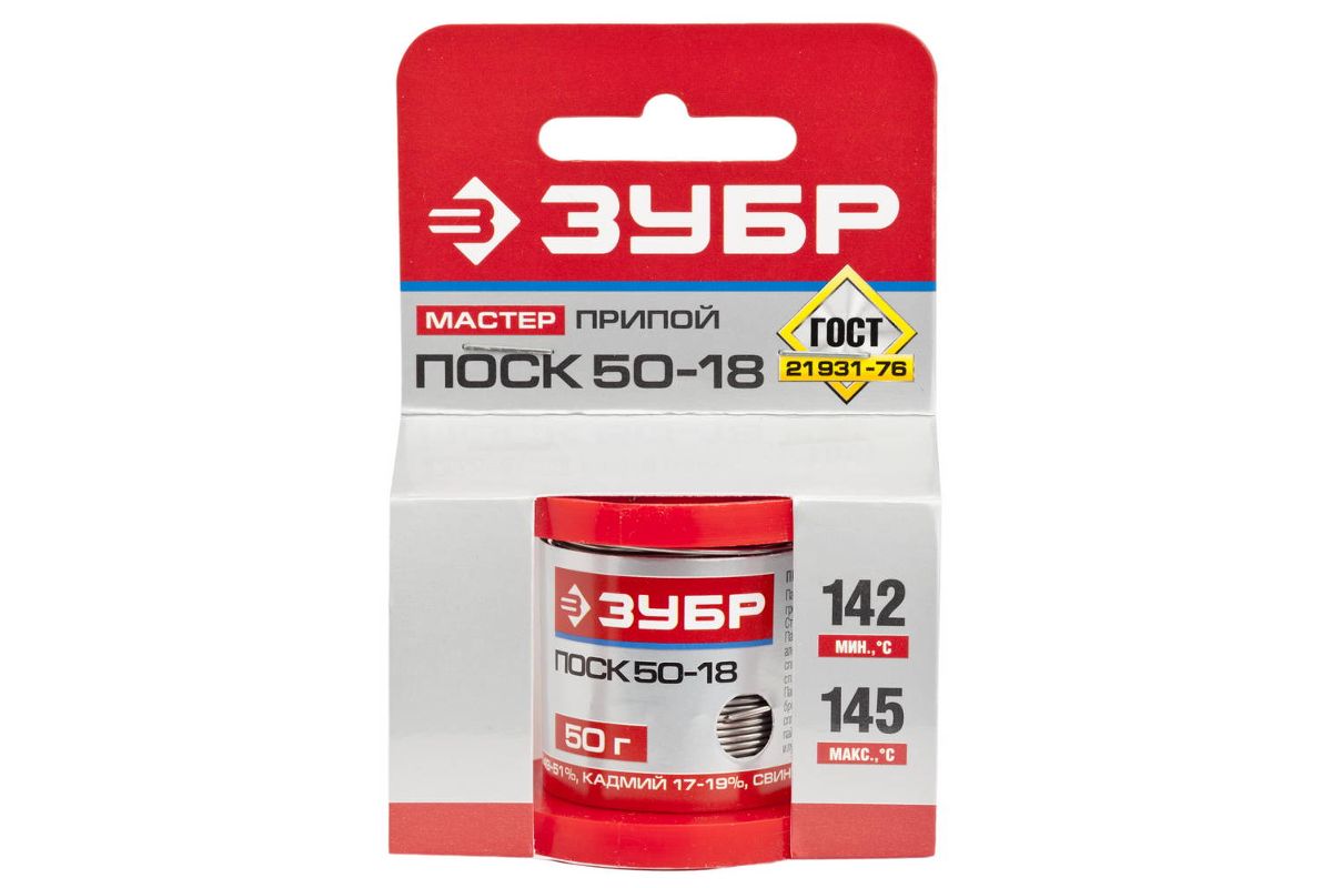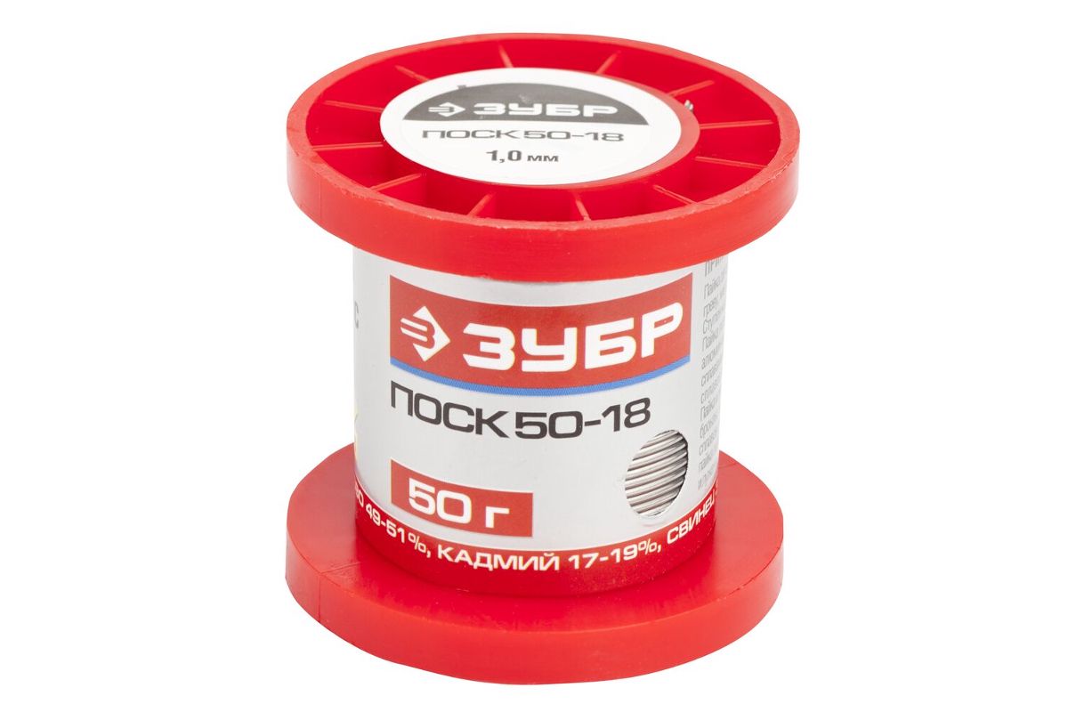 Припой ПОСК 50-18 ЗУБР 55454-050-10, специальный легкоплавкий с кадмием проволока 50г 1мм
