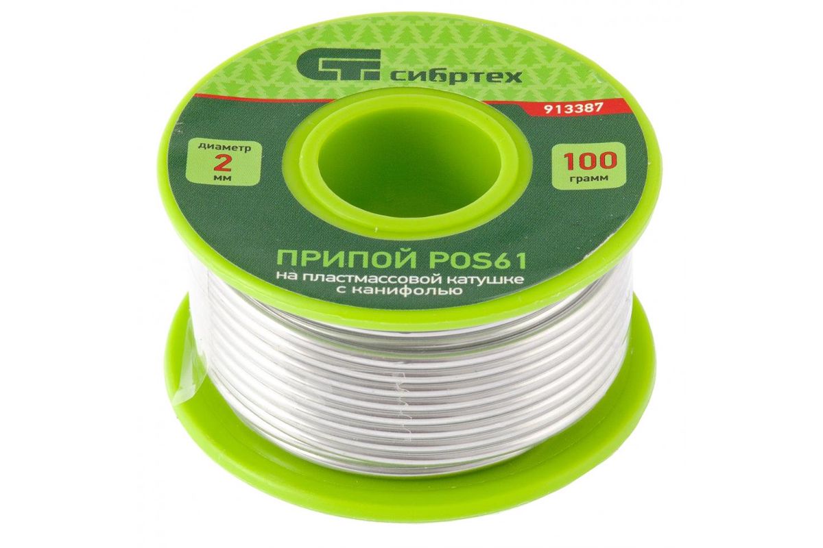 Припой СИБРТЕХ 913387 с канифолью d 2мм 100 г pos61 на пластмассовой катушке