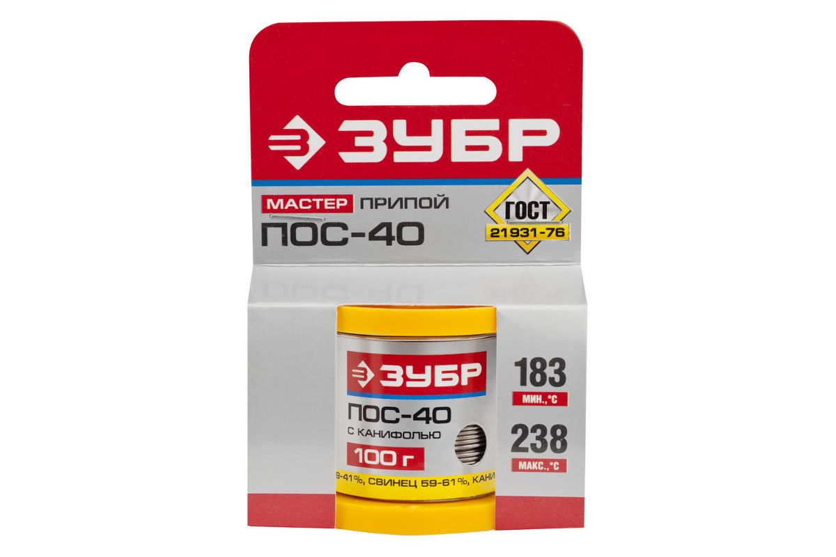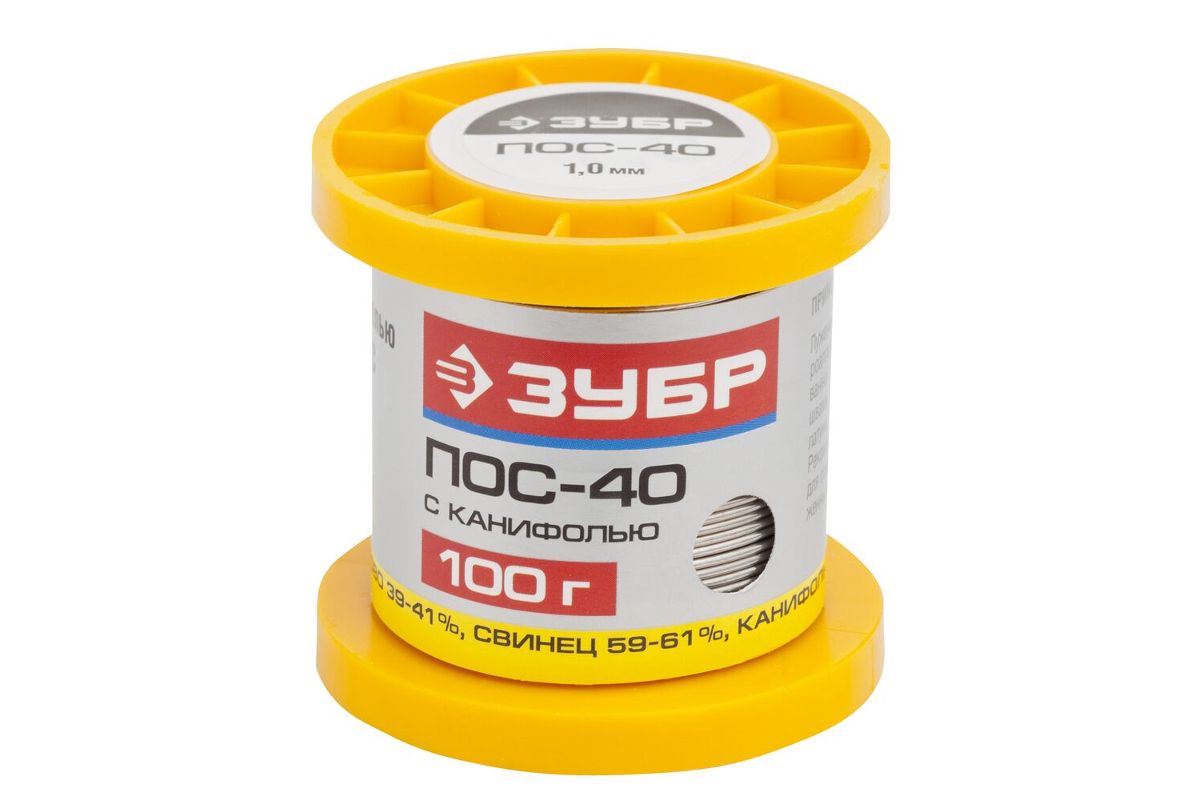 Припой ЗУБР 55451-100-10C ПОС 40 трубка с канифолью 100г 1мм