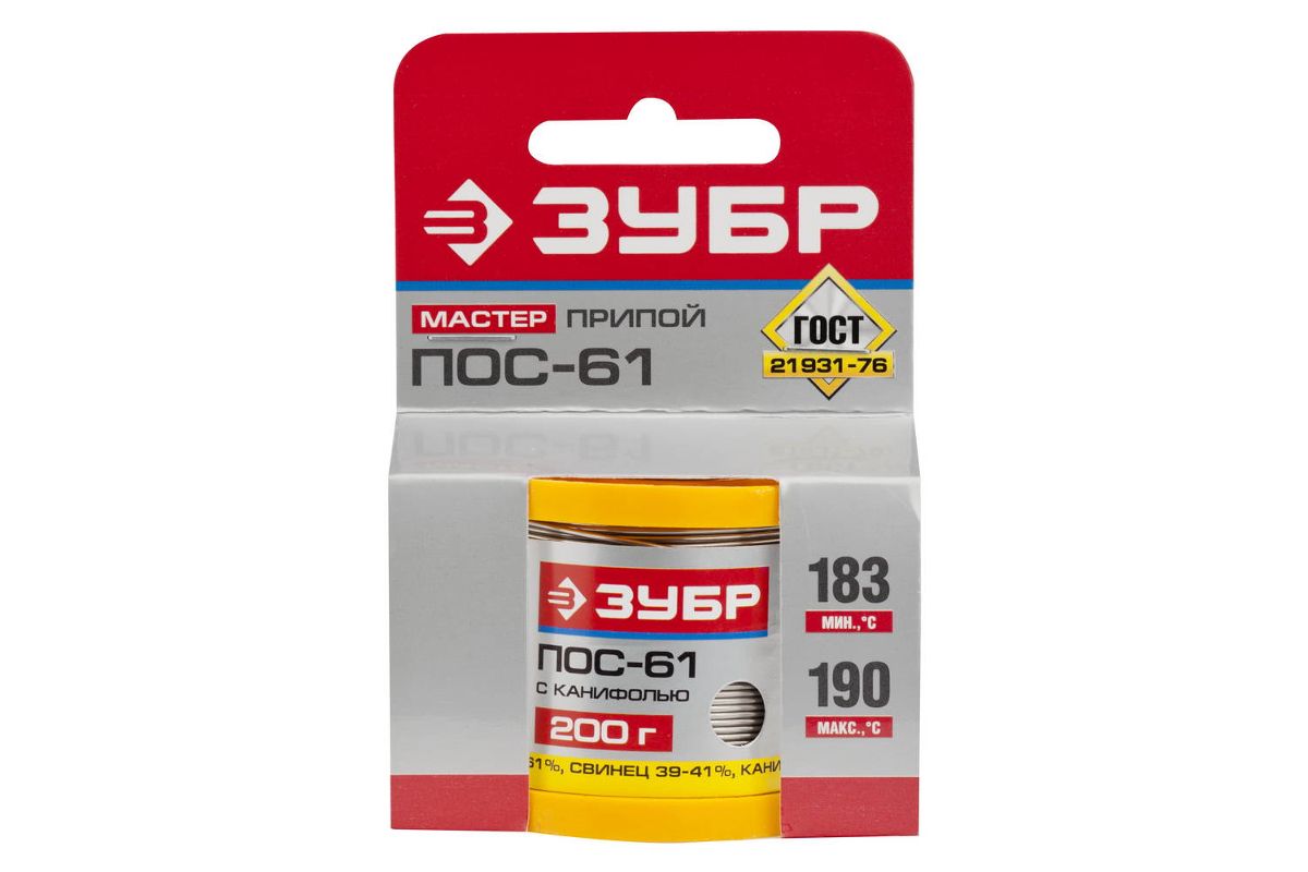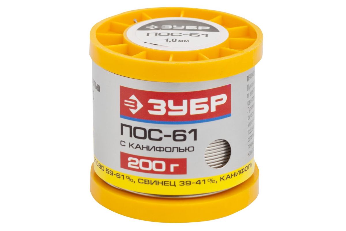 Припой ЗУБР 55450-200-10C ПОС 61 трубка с канифолью 200г 1мм