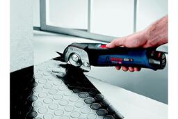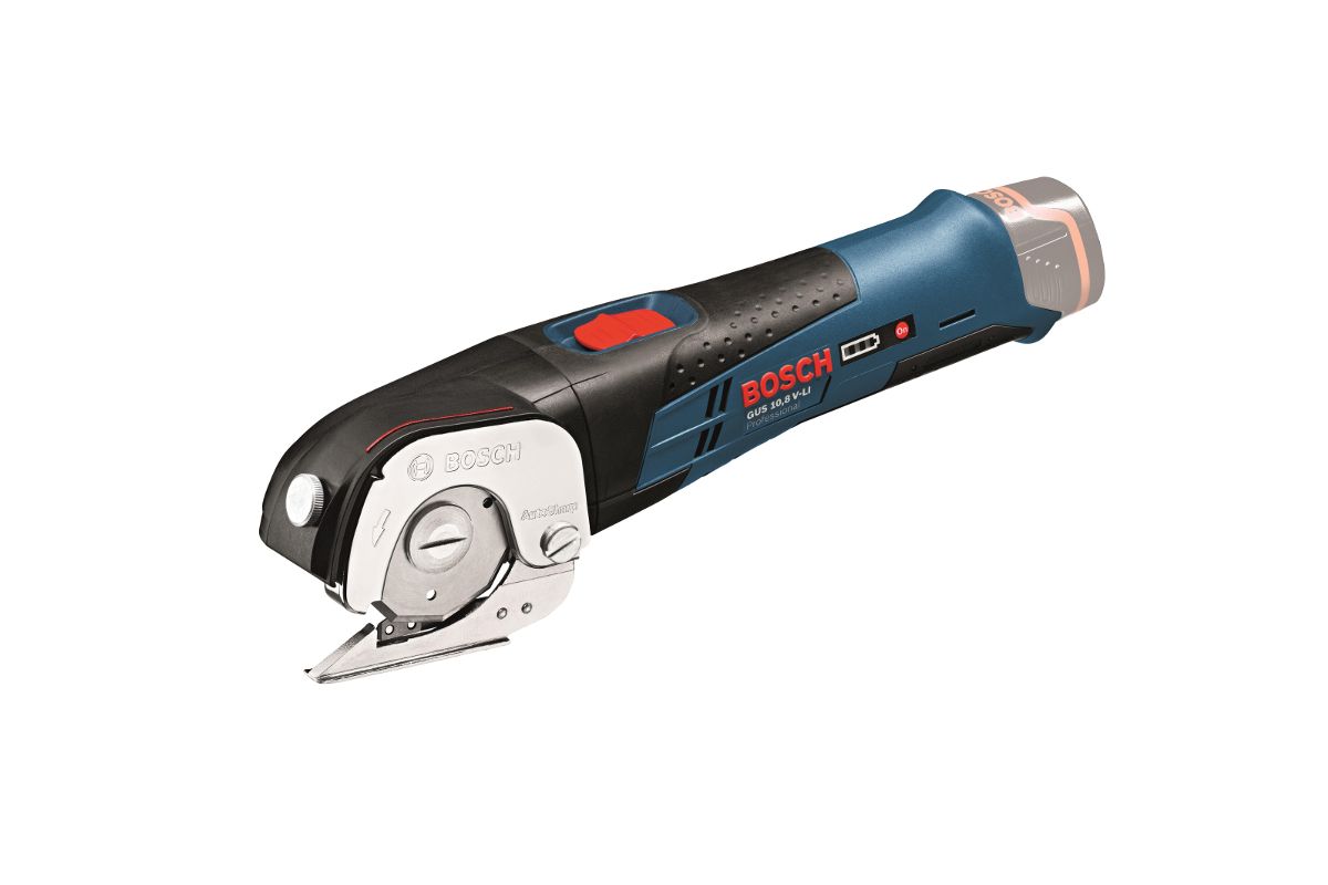 BOSCH GUS 10,8 V-LI — аккумуляторные ножницы для резки мягких и гибких листовых материалов — ковролина, ткани, пробки, кожи, картона, ПВХ. Допустимая толщина материала — не более 11 мм. Возможна и прямая, и фигурная резка. Питание — от 10,8-вольтового аккумулятора Li-Ion (в комплект не входит).