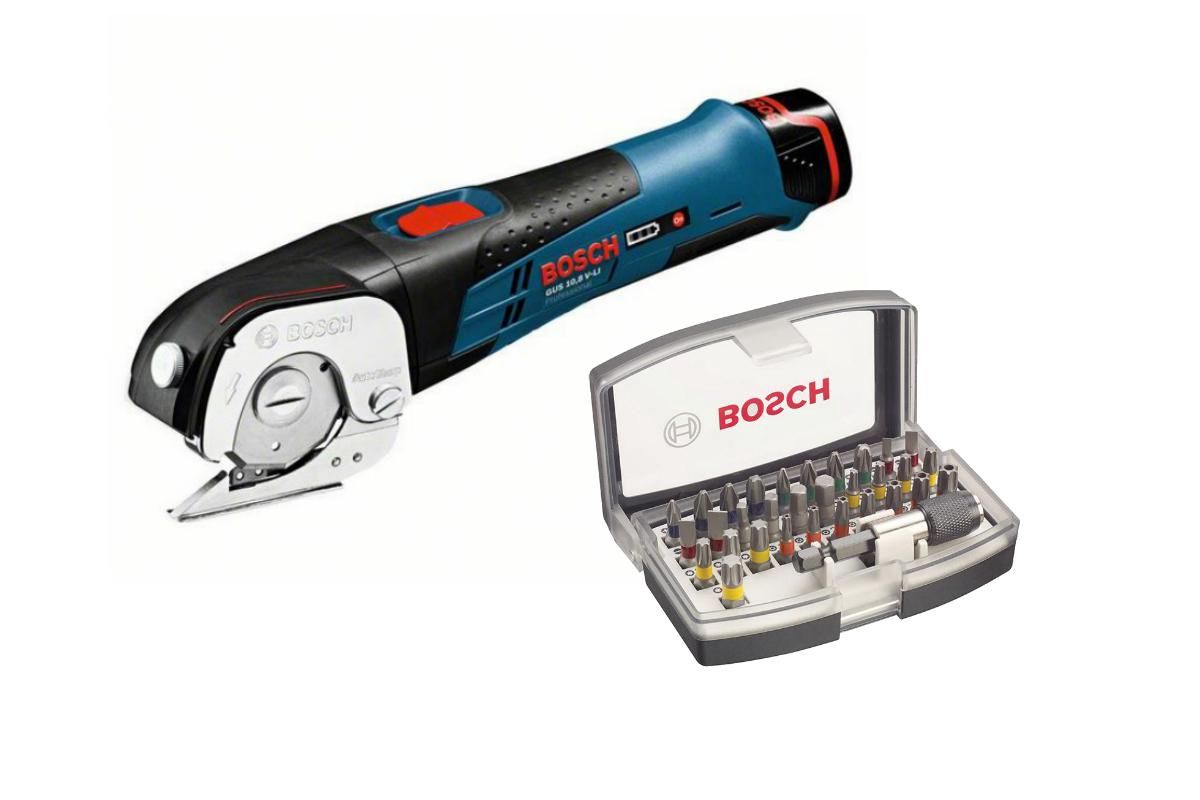 Набор: Ножницы BOSCH GUS 12 V-LI2.0 Ач (0.601.9B2.904),Набор бит BOSCH 2.607.017.319