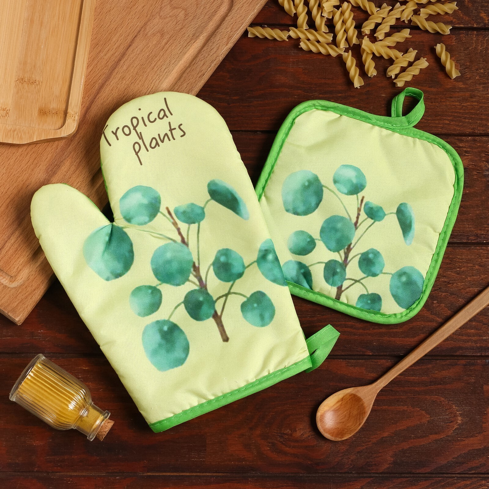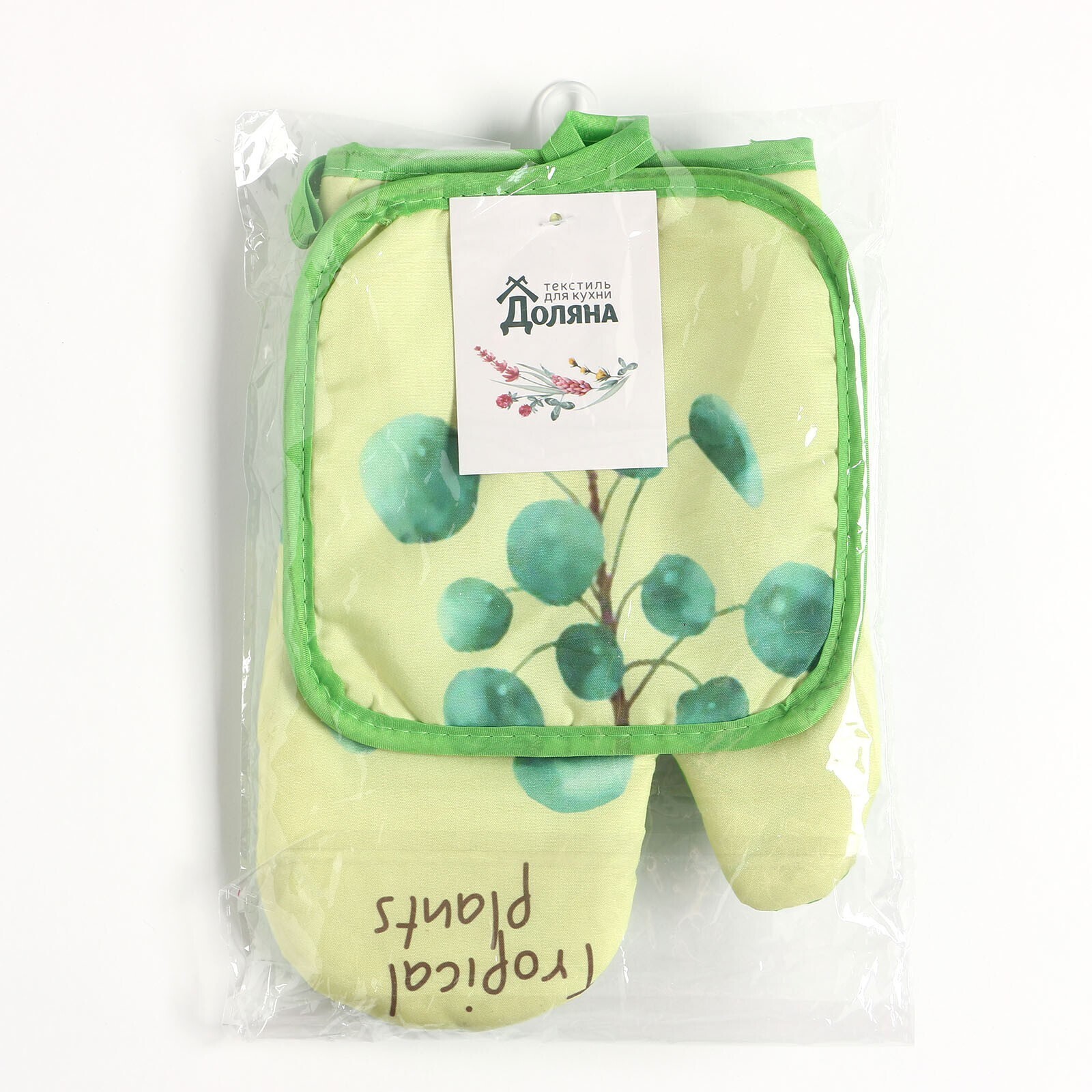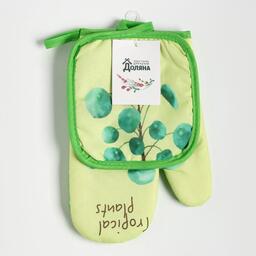 Кухонный набор 2 предмета Доляна "Tropical" цвет зелёный прихватка 17х17 см, варежка 25х16 см,100% п/э