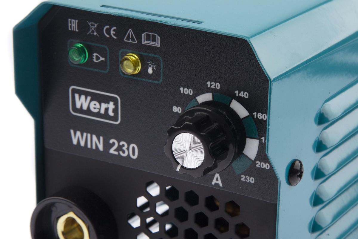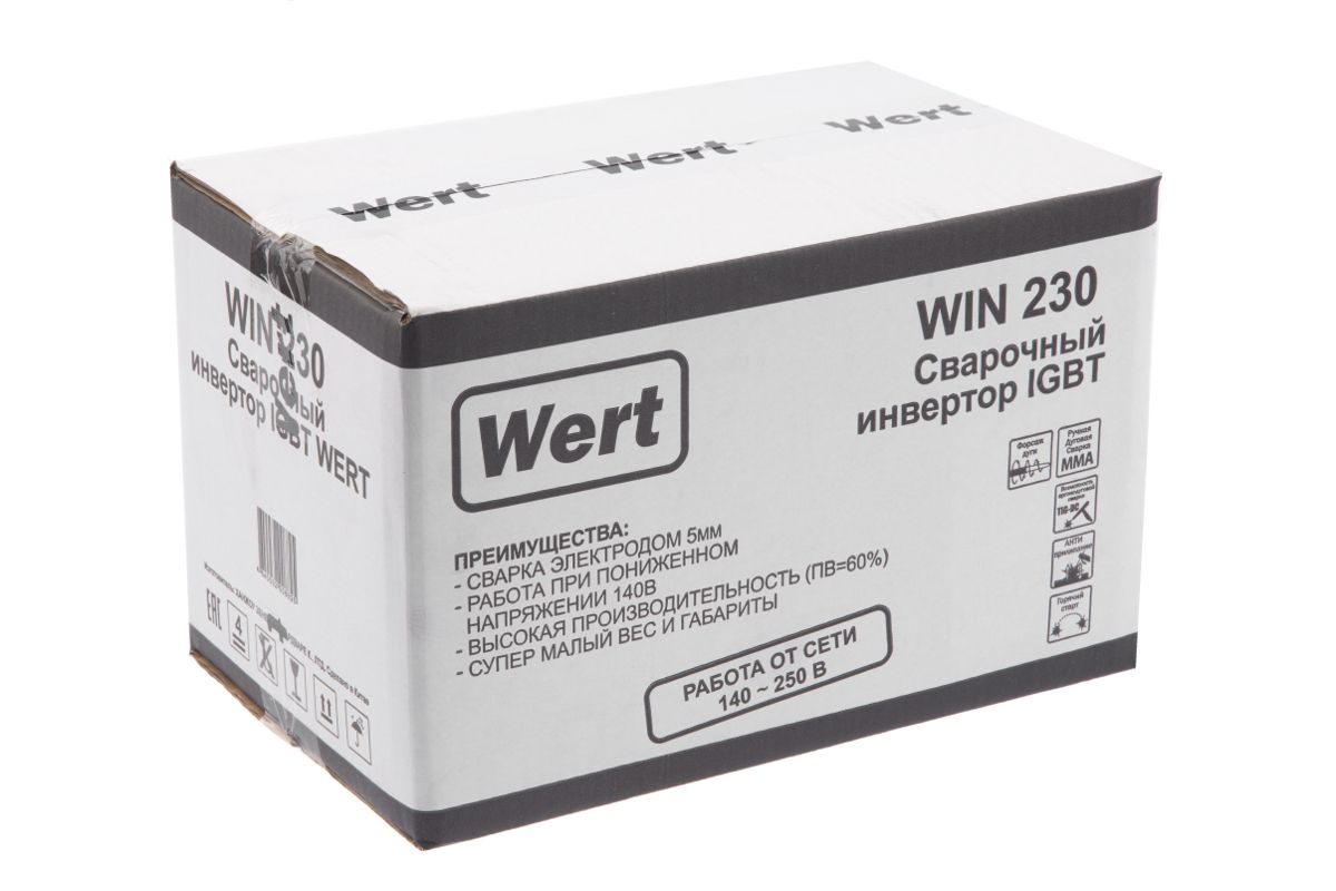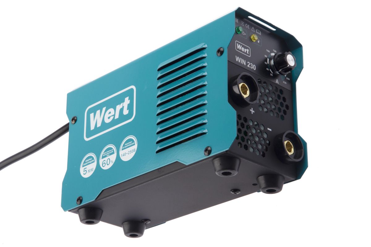 Сварочный инвертор WERT WIN 230 140-250В,5.3кВт,20-230А,ПВ=230А/60%,O1.6-5мм,2.6кг.