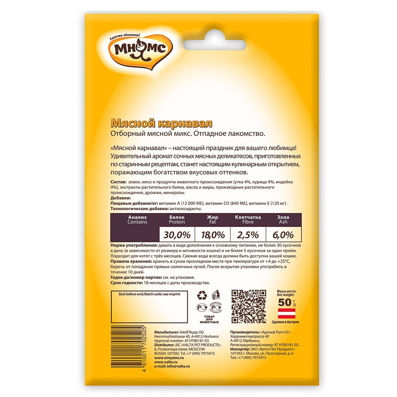 Лакомство Мнямс Мясной карнавал для кошек, утка, индейка, курица, 50 г