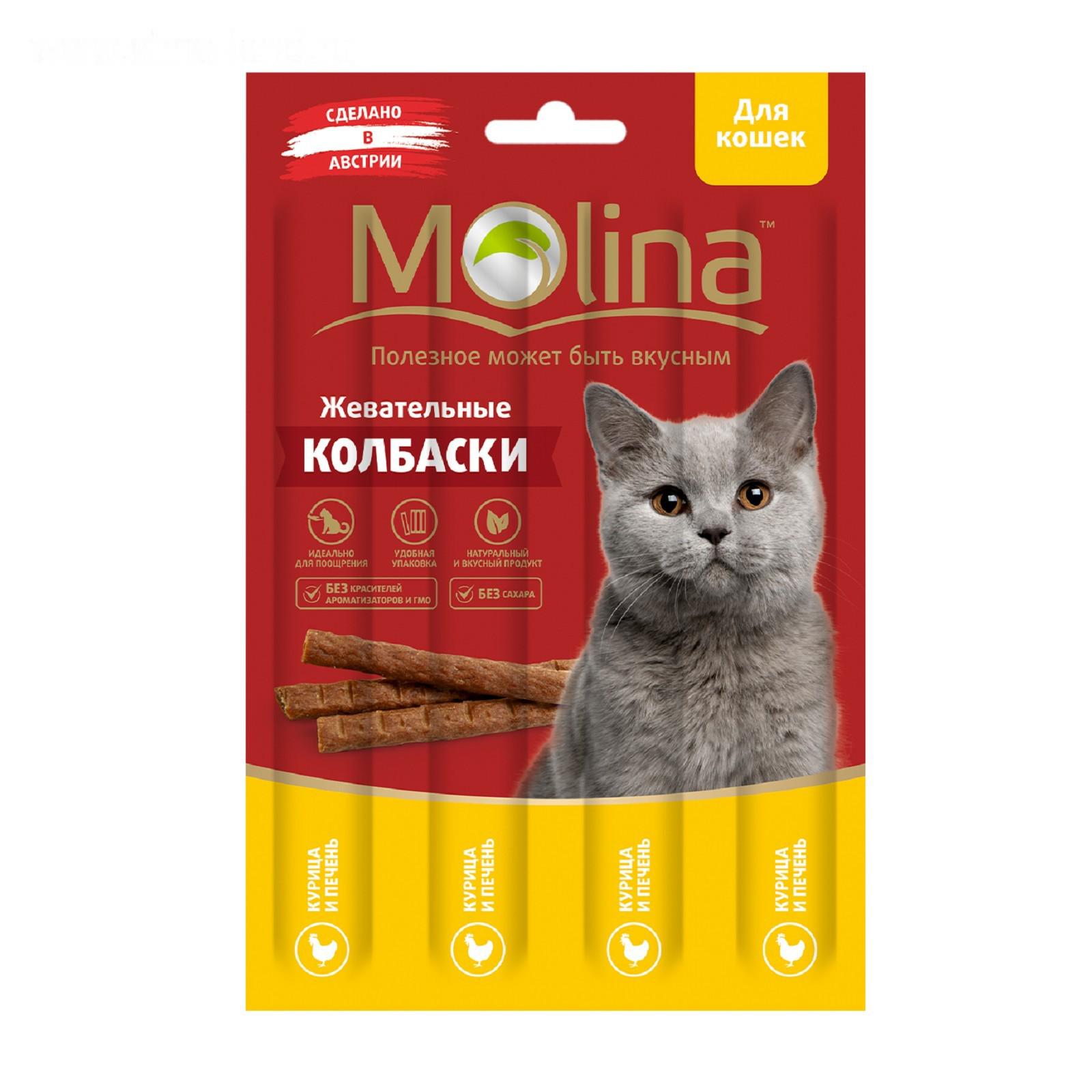 Жевательные колбаски Molina для кошек, курица/печень, 20 г