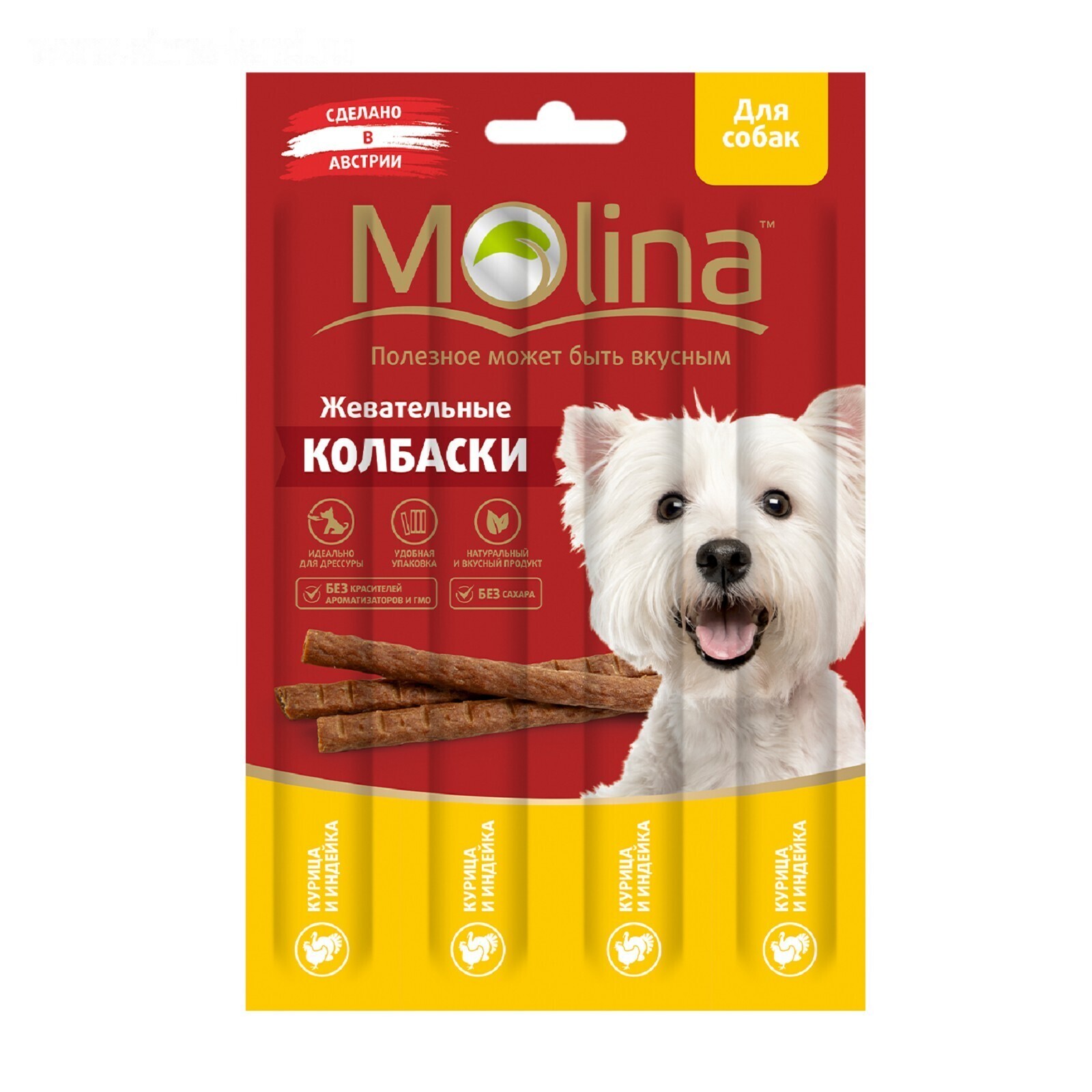 Жевательные колбаски Molina для собак, курица/индейка, 20 г