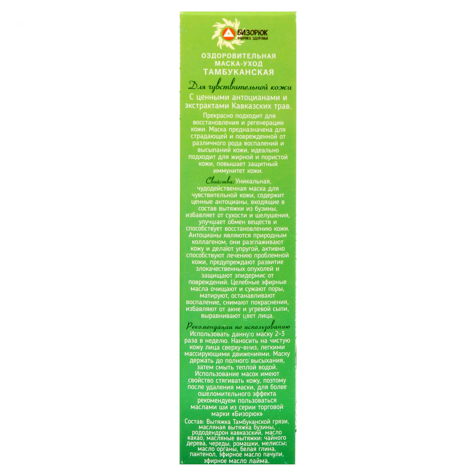 Тамбуканская маска-уход применяется для восстановления кожи, повышения её иммунитета. Предназначена для проблемной, подходит для жирной и пористой кожи.
