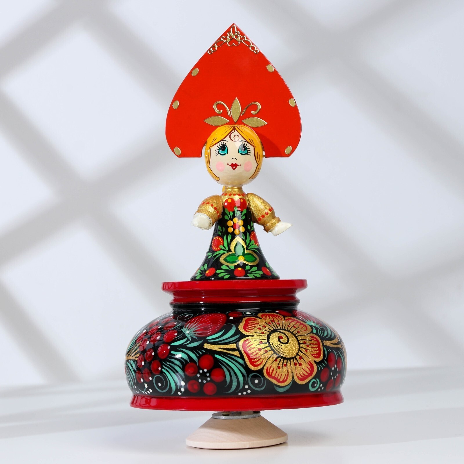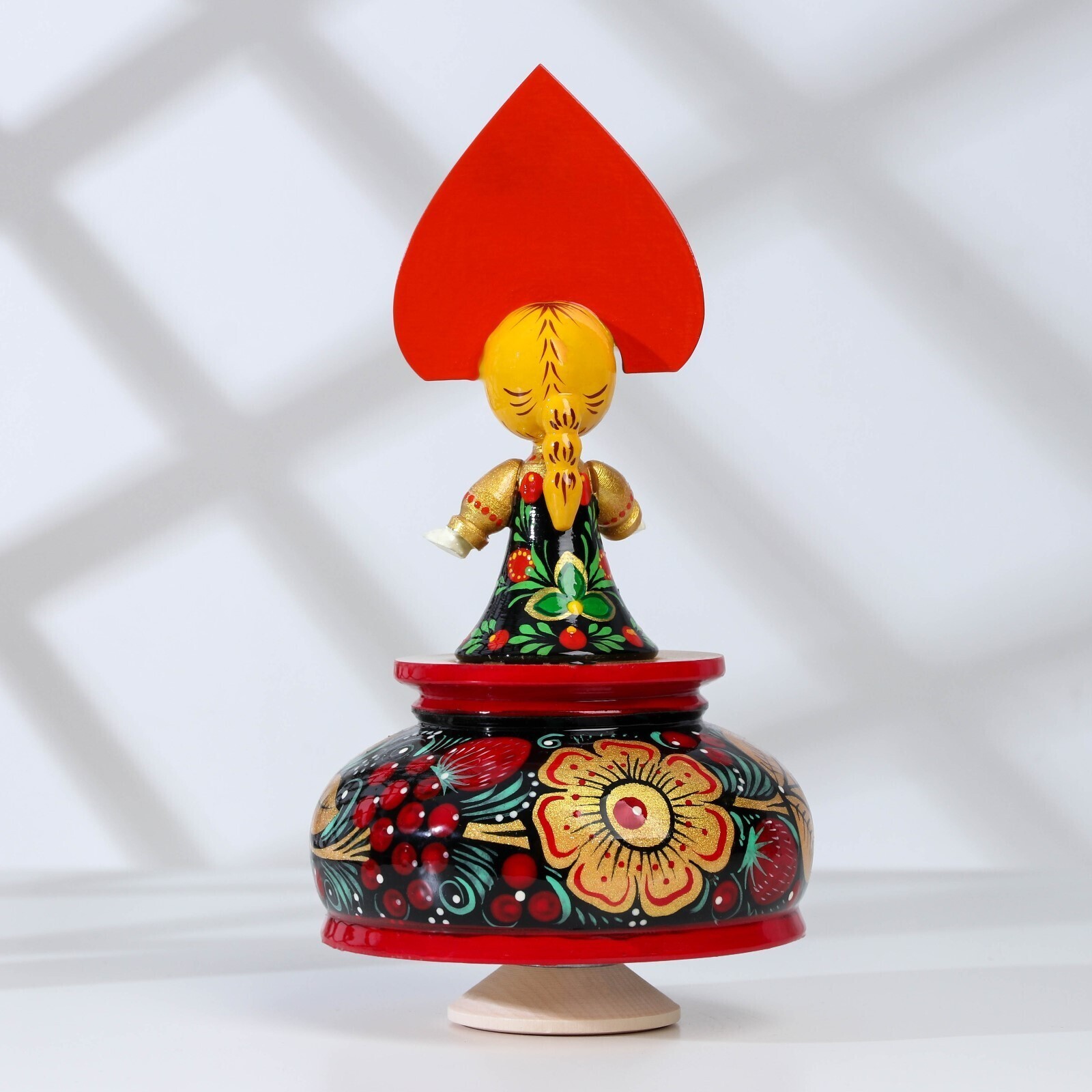 Сувенир музыкальный "Девочка", хохлома черная, ручная роспись