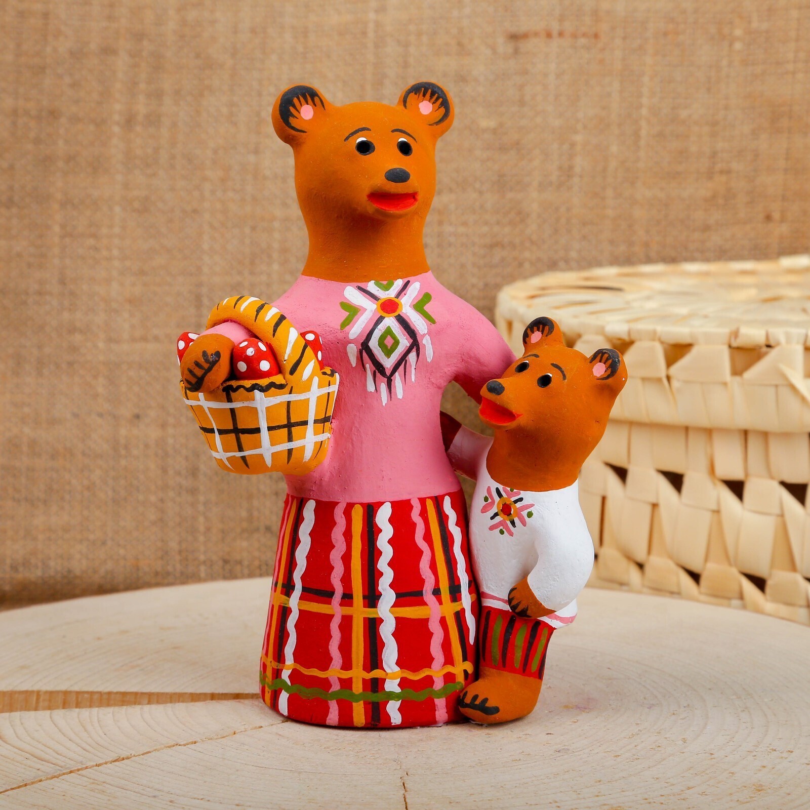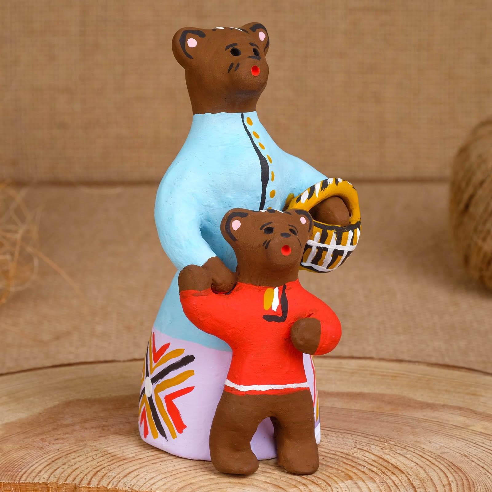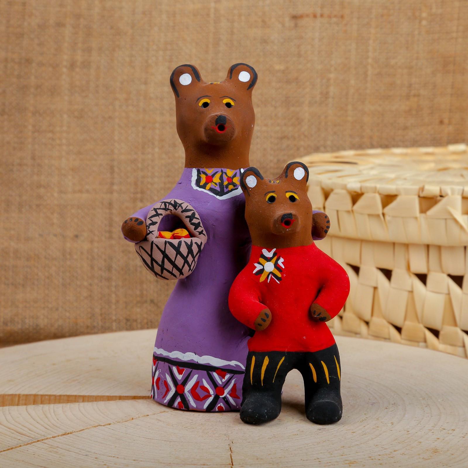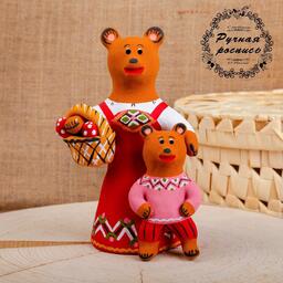 Сувенир «Медведица с медвежонком», 8×10×15 см, каргопольская игрушка