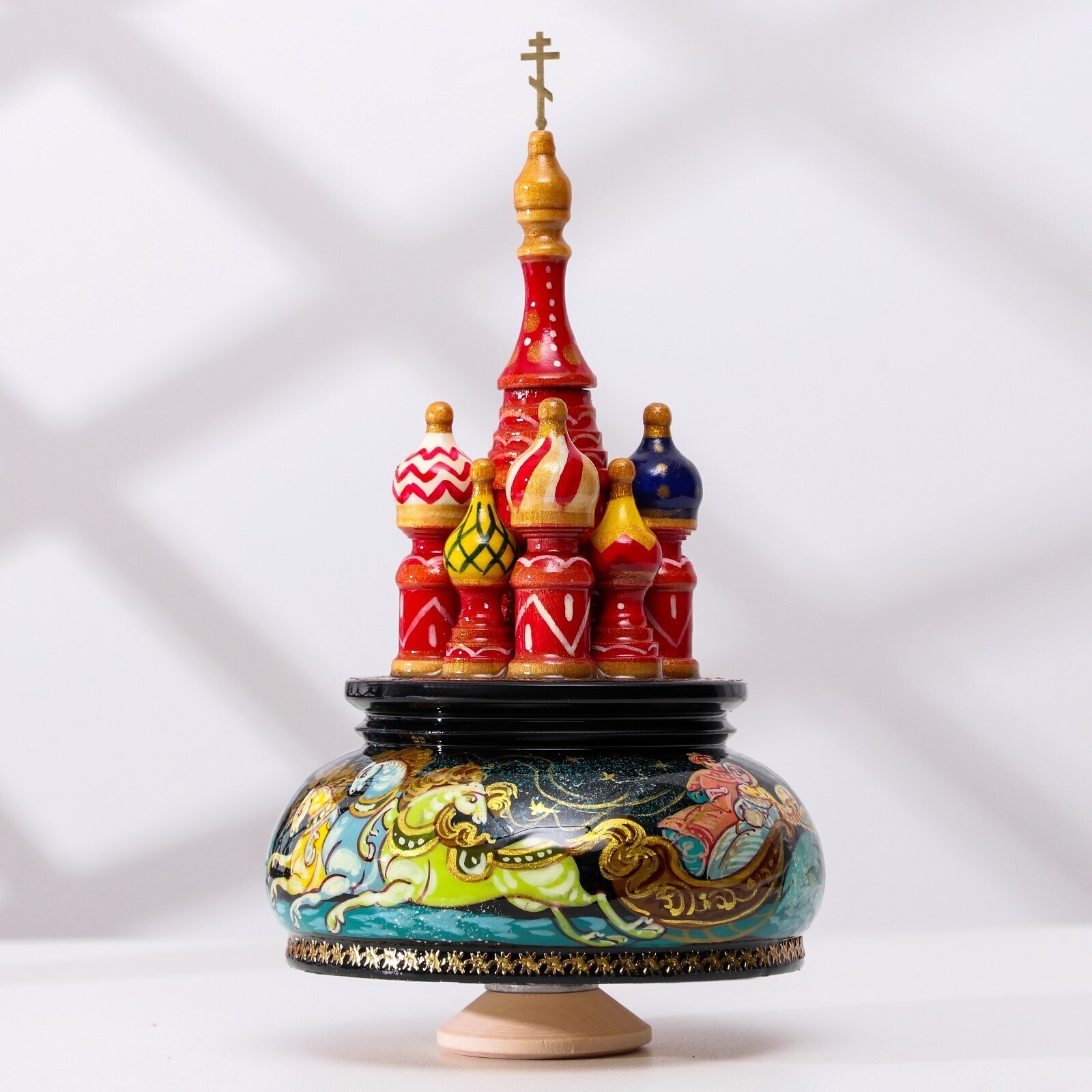 Сувенир музыкальный "Храм", тройка, черный фон, ручная роспись