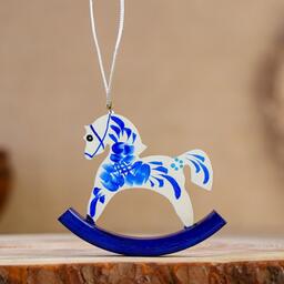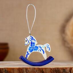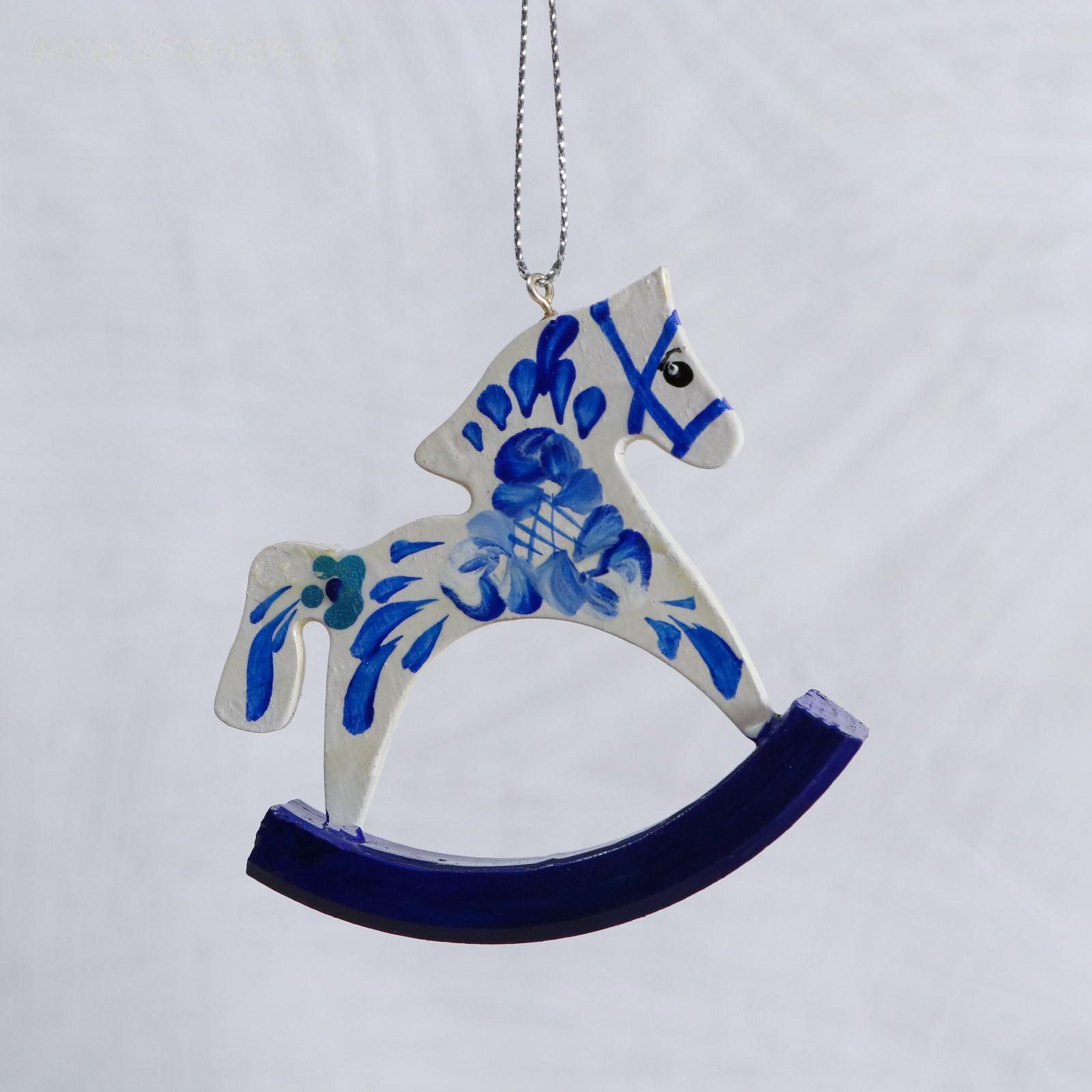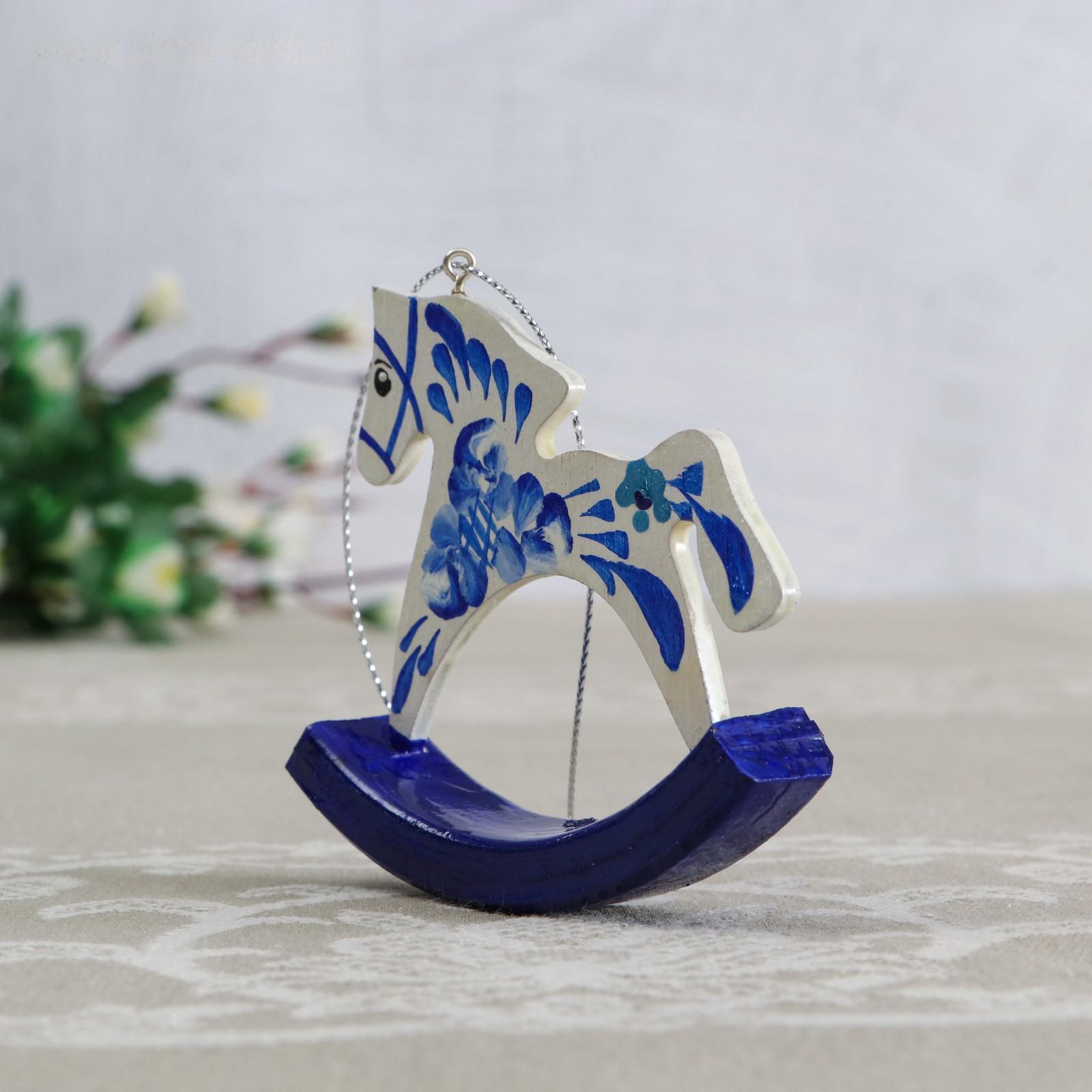Сувенир "Лошадка-качалка" под гжель, 6,5 см, ручная роспись