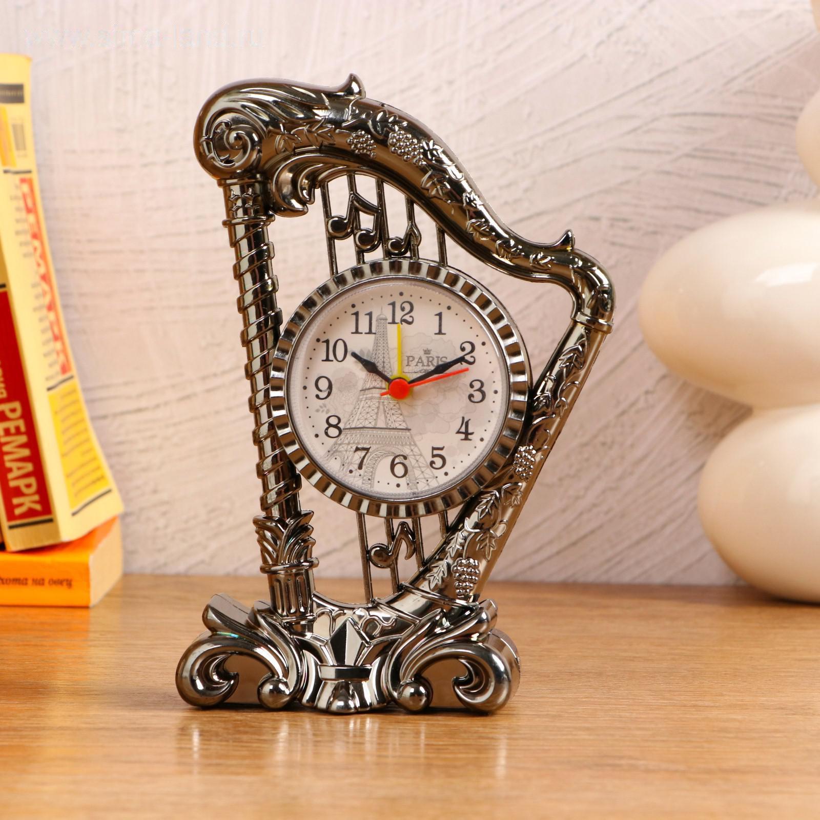 Будильник "Арфа" дискретный ход, d-6.5 см, 19 х 11.5 см, хром