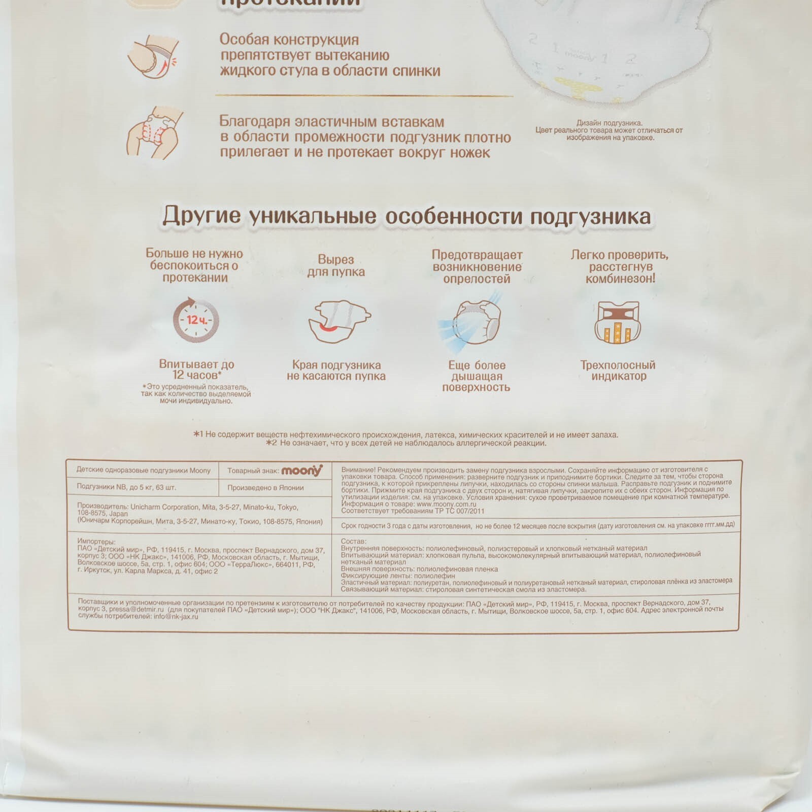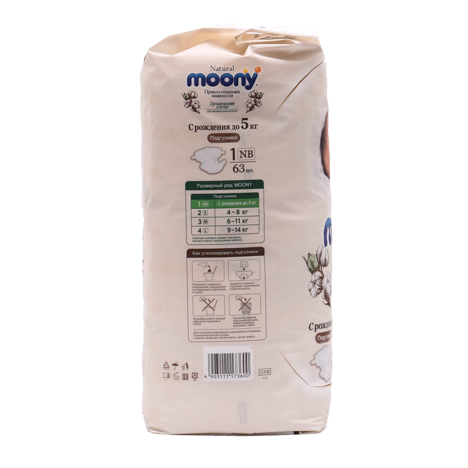 MOONY Natural подгузники, NB (до 5 кг), 63 шт. NEW
