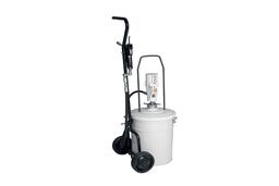 Мобильная установка для раздачи смазки. Устройство используется в автосервисе, мастерской, а также в гараже. Конструкция модели предусматривает удобное расположение бочки на специальной тележке для перемещения по рабочей площадке. Модель поставляется без мембраны и применяется совместно с транспортировочным ведром, в котором поставляются пластичные смазки.