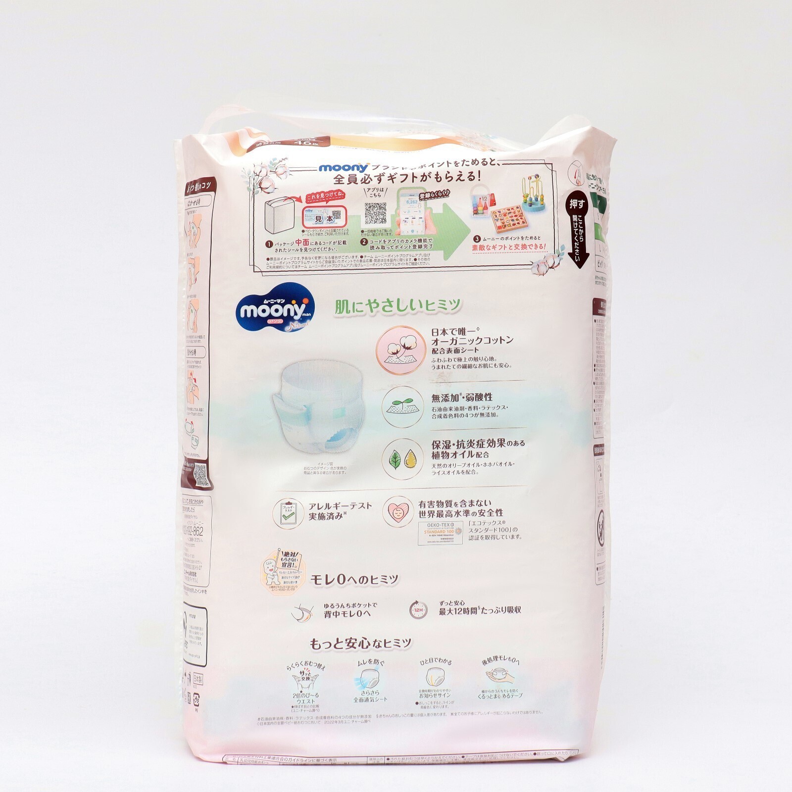 Внутренний слой подгузников Natural moony содержит в составе органический хлопок, который окутывает нежностью кожу малыша.