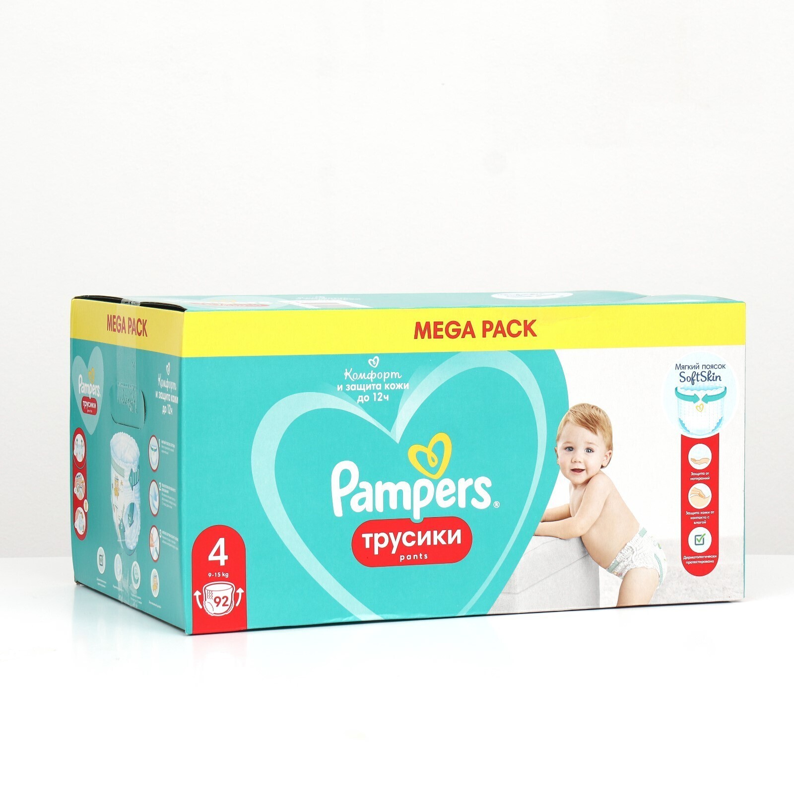 Новые трусики Pampers Pants с анатомической посадкой! Супермягкий эластичный поясок нежно прилегает к животику, мягкие бортики вокруг ножек помогают защитить нежную кожу малыша от натираний, а технология мгновенного впитывания удерживает влагу внутри, обеспечивая сухость до 12 часов – как днём, так ночью. Трусики Pampers легко надевать и снимать, так что активные малыши смогут продолжать изучать мир вокруг, не отвлекаясь на смену трусиков!