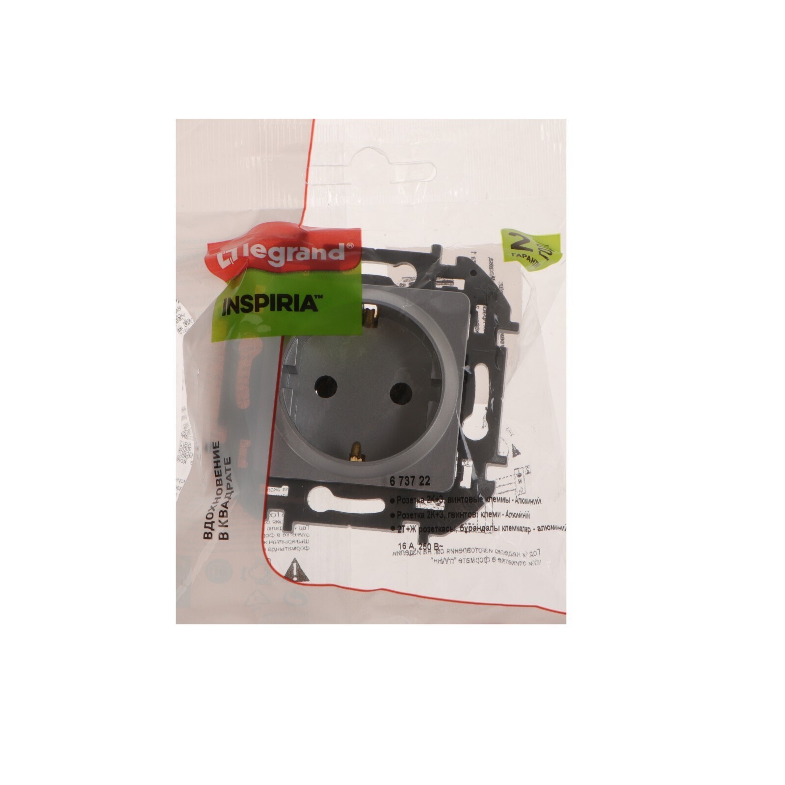 Розетка Legrand INSPIRIA, 2 К+ 3, 16 А, 250 В, Алюминий