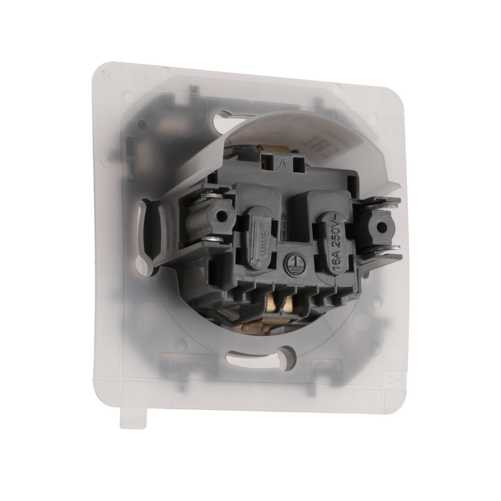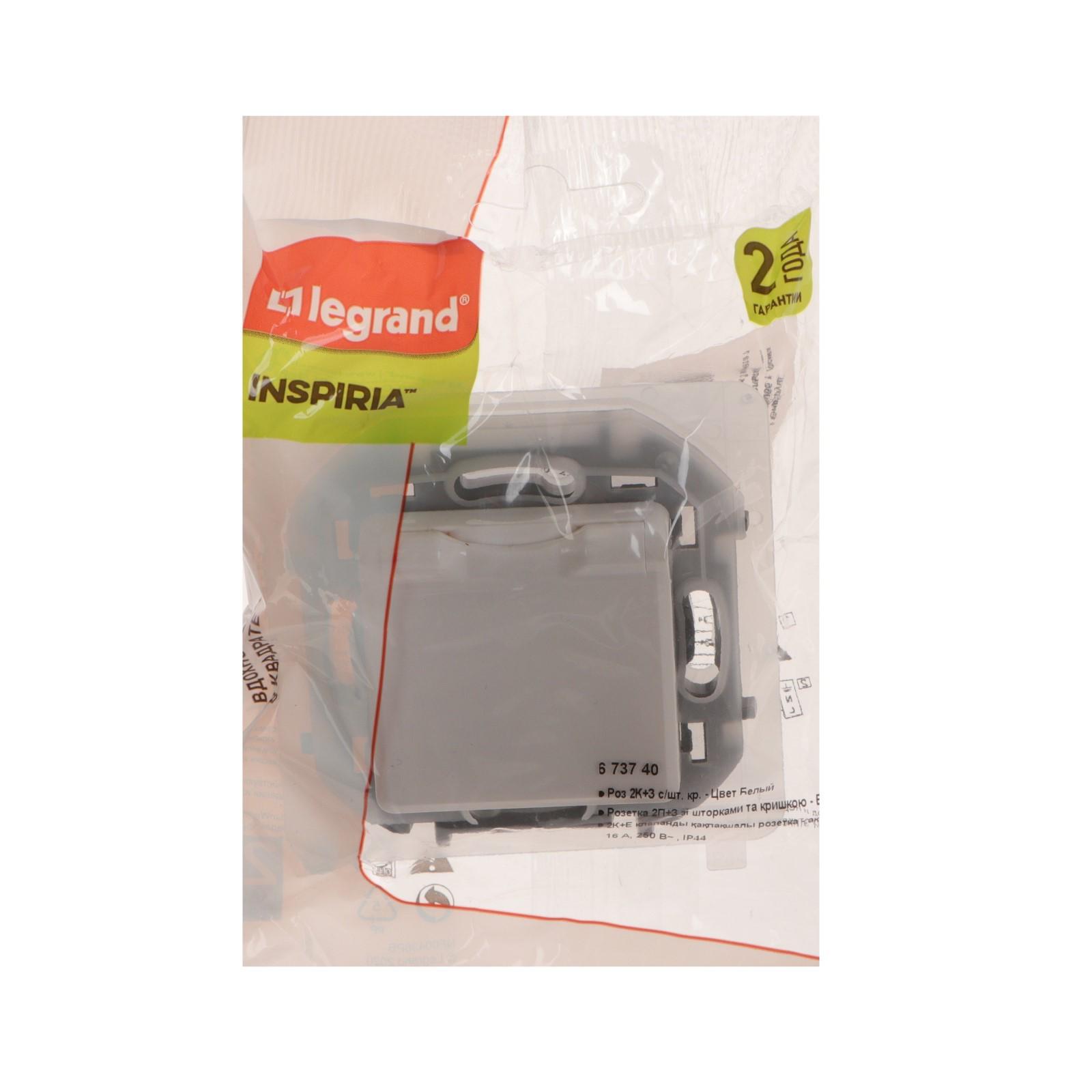 Розетка Legrand INSPIRIA, 2К+З, IP 44, с откидной крышкой и шторками, 16 А, 250 В, Белый
