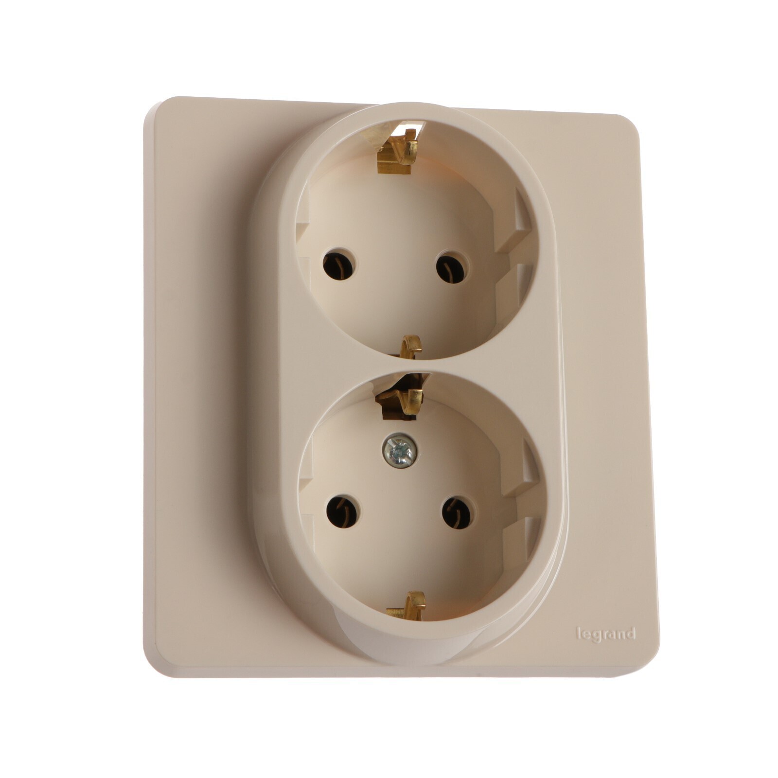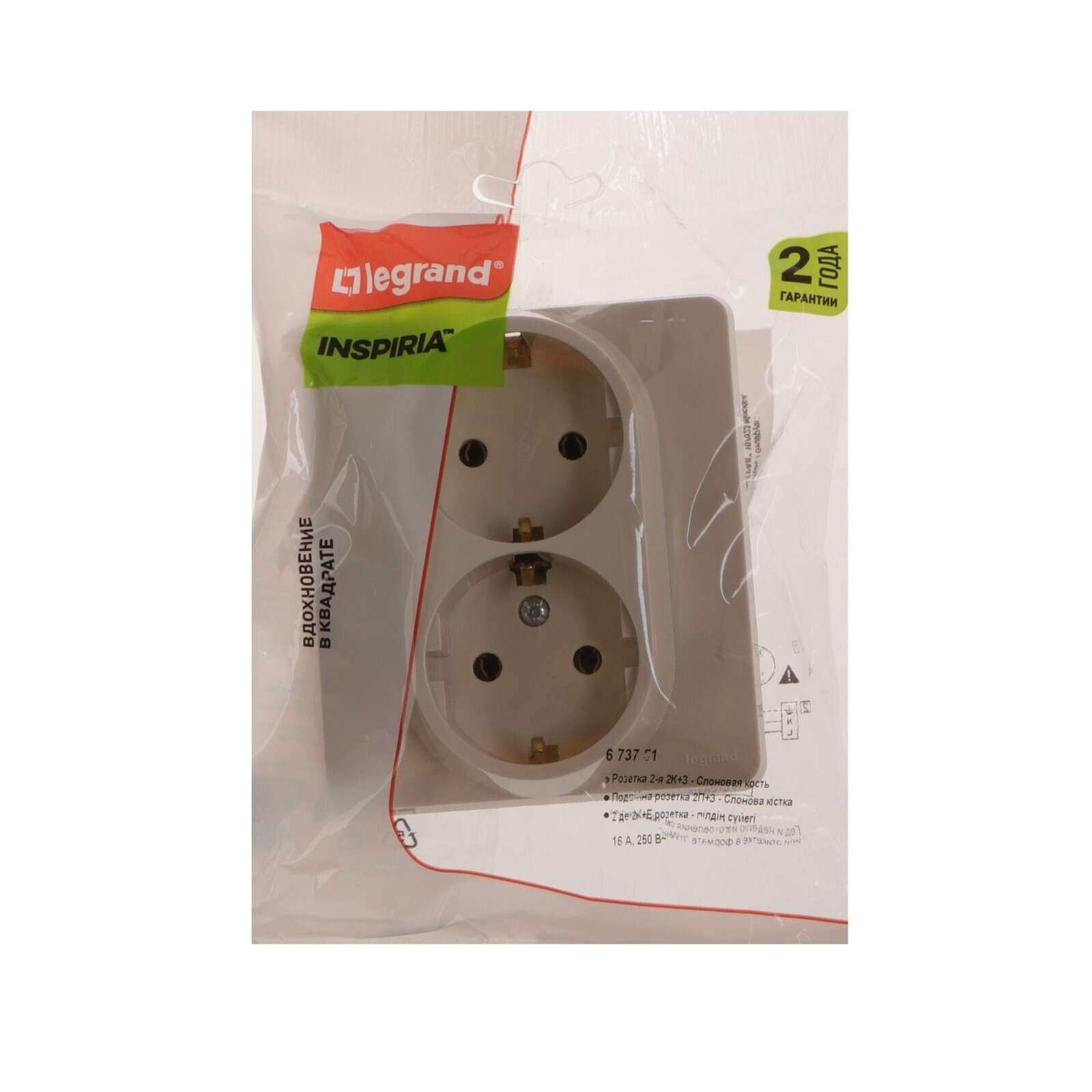 Розетка Legrand INSPIRIA, двухместная, 2К+З, 16 А, 250 В, Слоновая кость