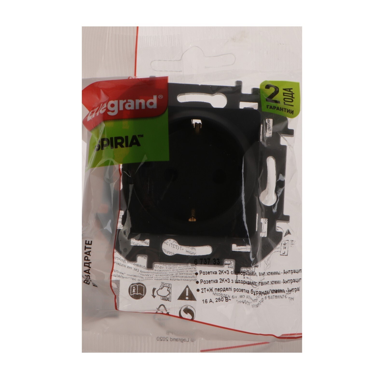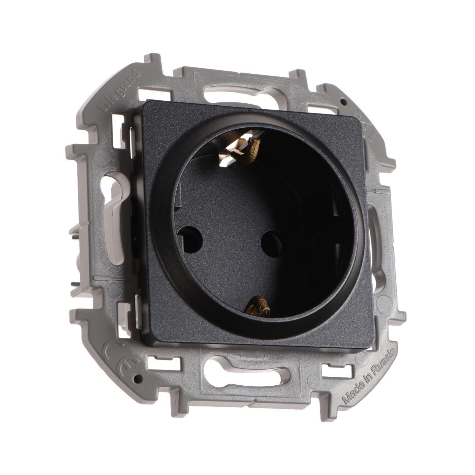 Розетка Legrand INSPIRIA, 2К+З, со шторками, 16 А, 250 В, Антрацит