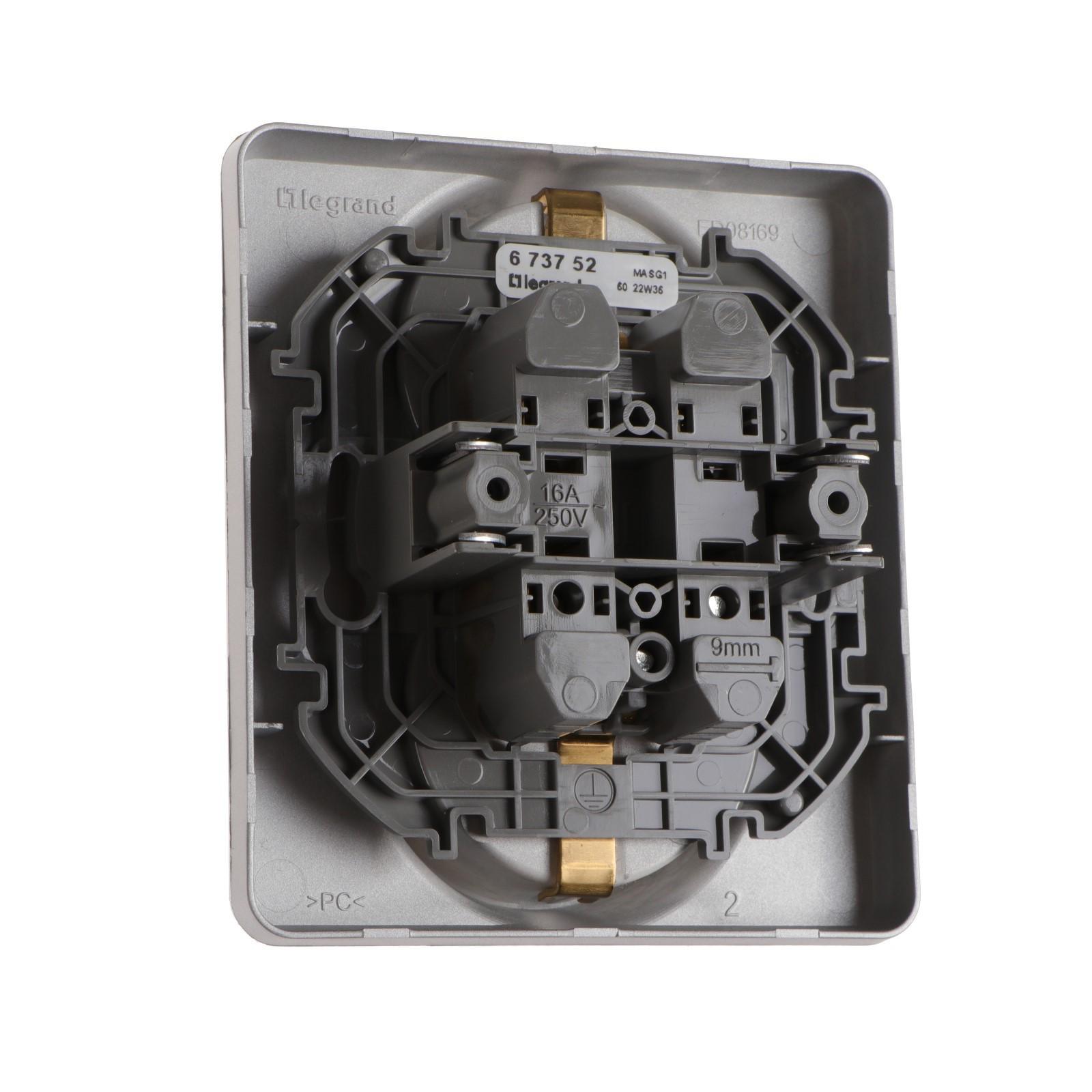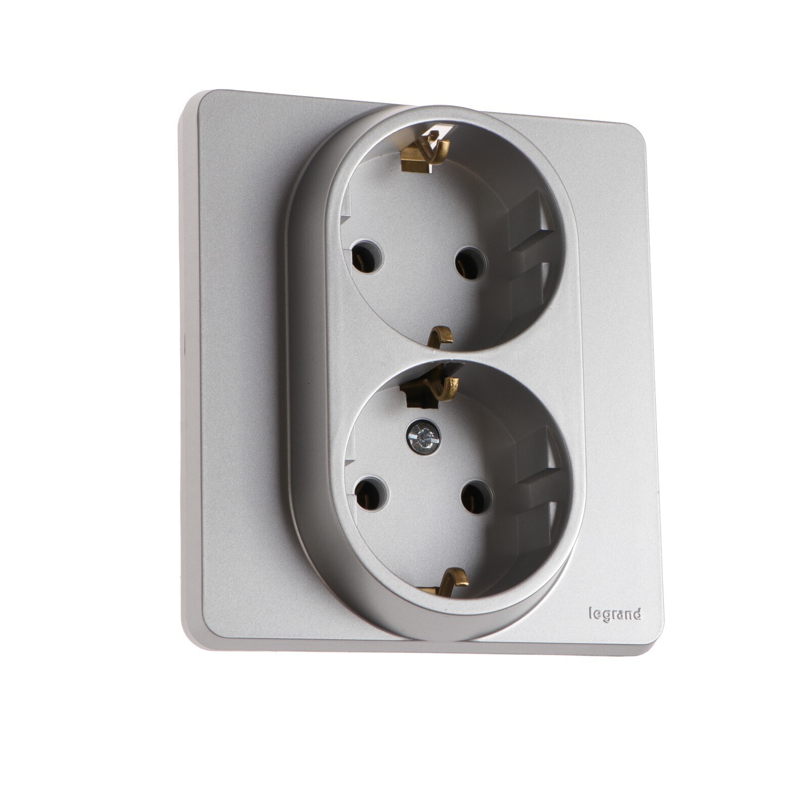 Розетка Legrand INSPIRIA, двухместная, 2К+З, 16 А, 250 В, Алюминий