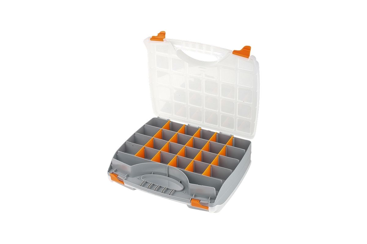 Двусторонние органайзеры «Stels» — универсальное решение для хранения ручного инструмента, крепежа и расходных материалов. Регулируемая планировка количества и размеров секций позволит наилучшим образом организовать пространство для хранения и обеспечит быстрый доступ к инструменту. Предназначены для хранения и транспортировки разнообразного инструмента и крепежа, а также рыболовных снастей и хозяйственно-бытовых принадлежностей.