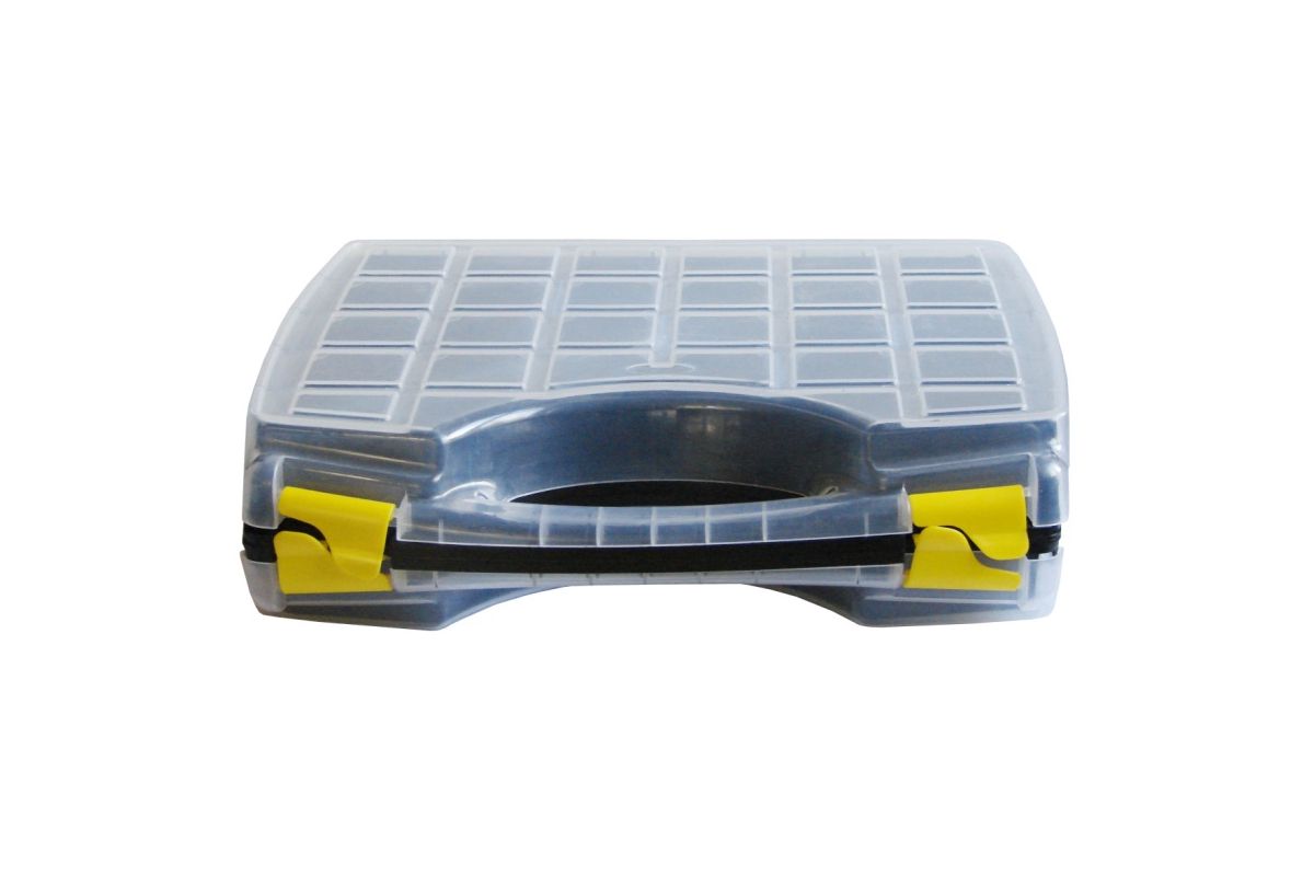 Бокс для инструмента Элит Пласт ED-31. Предназначен для хранения различных мелочей. Прозрачные крышки с двух сторон увеличивают полезный объем для хранения и делают органайзер более функциональным. Тридцать пять съемных пластиковых вставок с каждой стороны позволяют регулировать количество отсеков и их размеры. Замки плотно фиксируют крышки, что обеспечивает сохранность вещей при транспортировке. Компактен, эргономичен, функционален. Для производства бокса используется сырьё: полипропилен PP4345S, PP1362R.