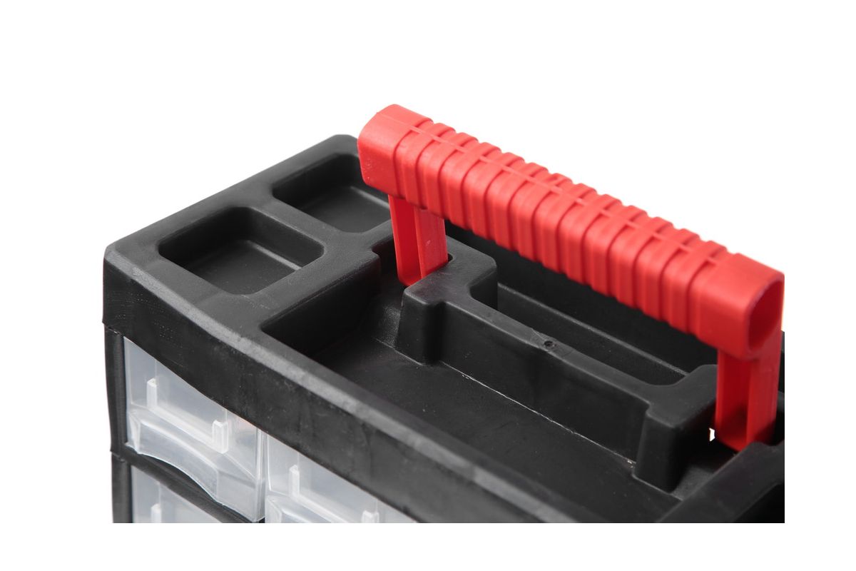 Кейс с выдвижными емкостями. Оснащен ручкой для удобства транспортировки. Предназначен для хранения мелких деталей.