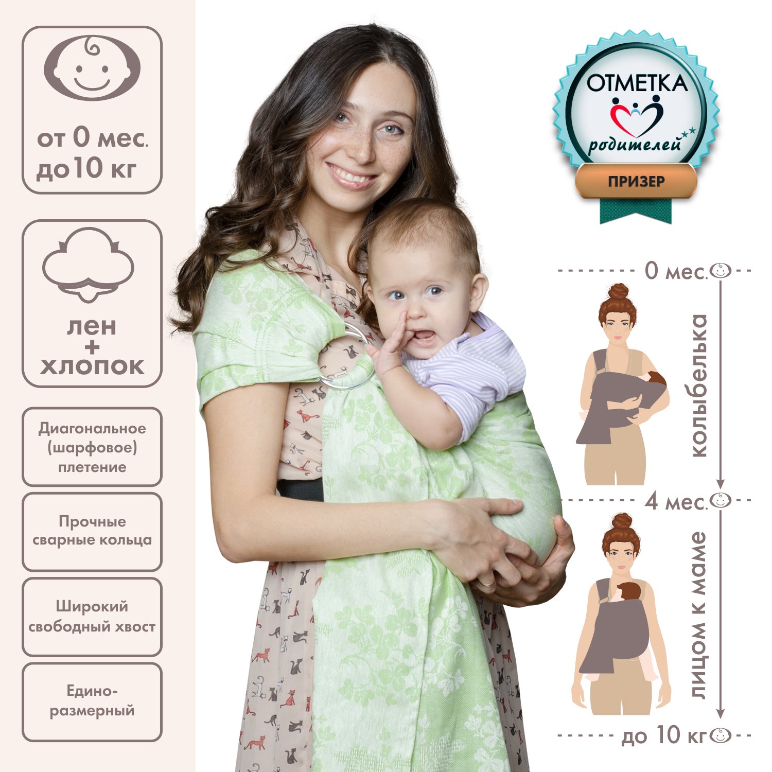 Слинг с кольцами Чудо-чадо «Герба» зелень СКЛ01-002