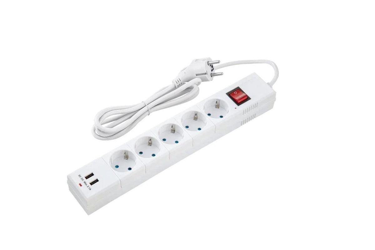 Сетевой фильтр белого цвета, имеет 5 розеток с заземлением. Также в корпусе присутствует 2 USB-порта, предназначенные для зарядки различных мобильных устройств. Большая и удобная кнопка на корпусе позволяет включать и выключать сетевой фильтр не вынимая вилку из розетки. Встроенная индикаторная лампа сигнализирует о состоянии прибора. Провод оснащен литой вилкой удобной г-образной формы с заземляющим контактом. Длина провода сетевого фильтра составляет 1,5 метра. В отличие от обычного удлинителя, сетевой фильтр сглаживает импульсные помехи и скачки напряжения, обеспечивая безопасную работу бытового и офисного электронного оборудования.