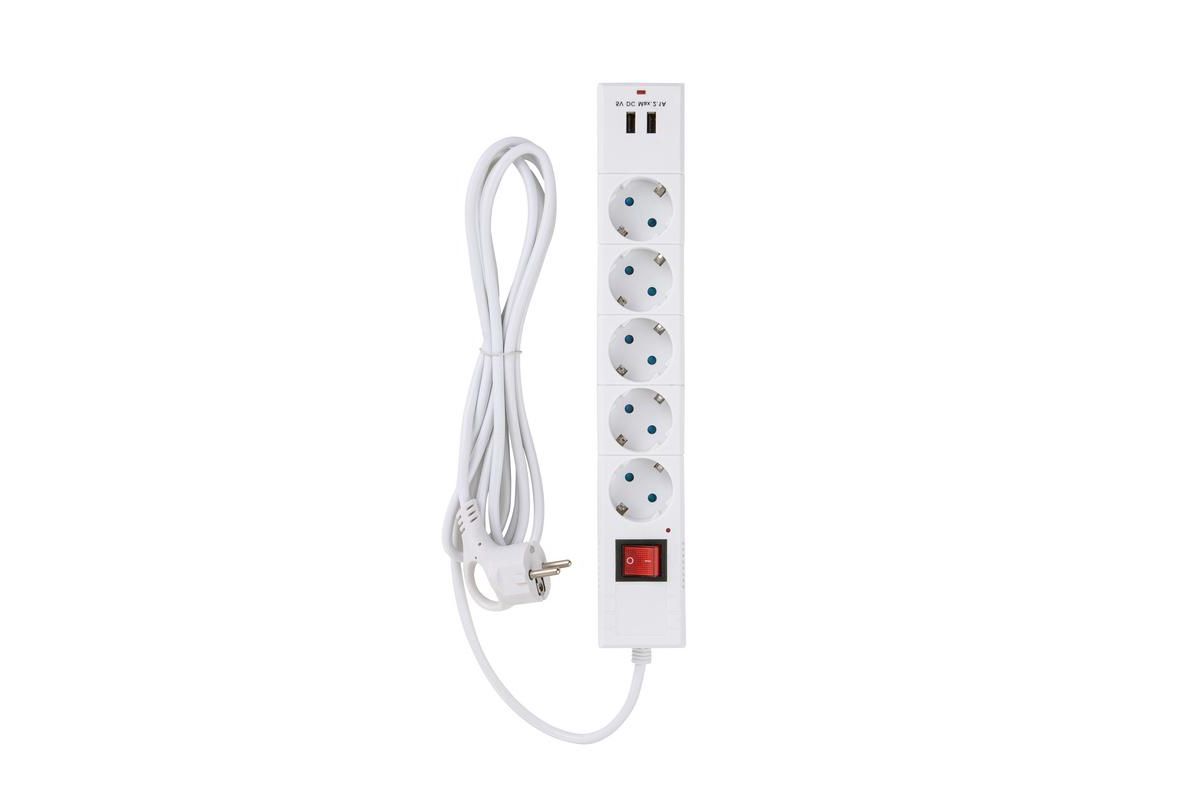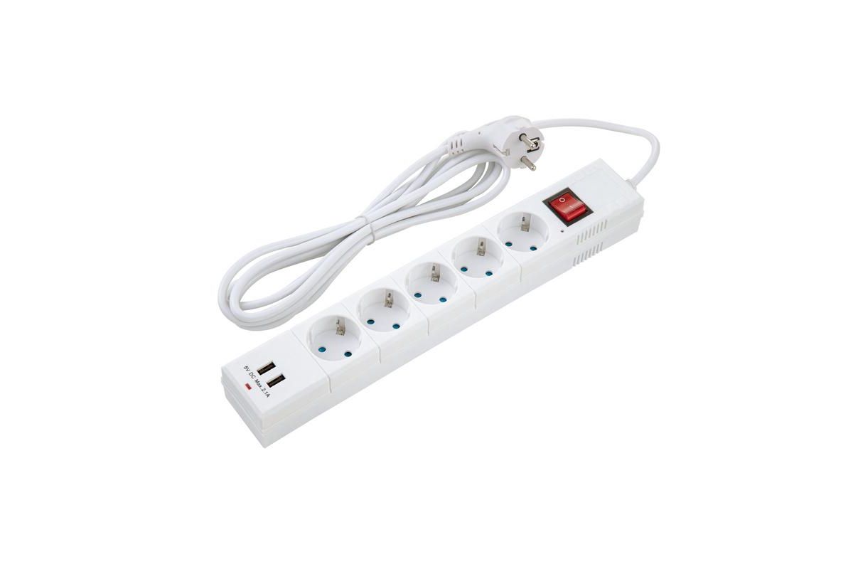 Сетевой фильтр DUWI 32592 5 5 гнезд с заземлением ПВС 3*0,75 белый 3м, с детскими шторками, 2USB