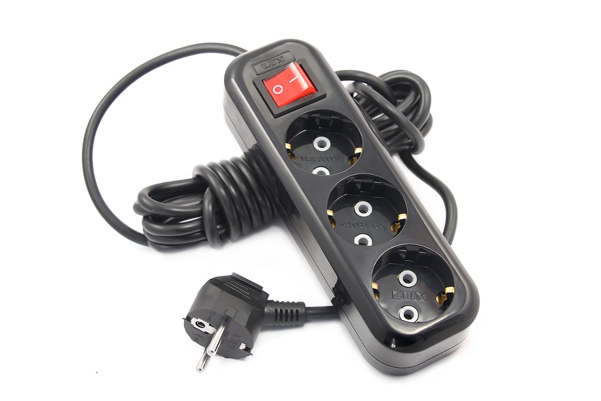 Удлинитель сетевой LUX У3-ЕВК-05 черный с выключателем 3-местный, 220В 16А, 5м