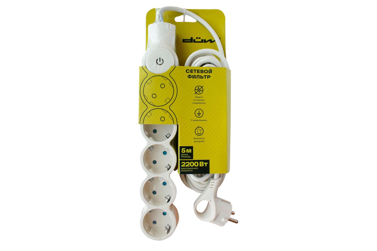 Сетевой фильтр DUWI 32573 4 5 гнезд, с выключателем, с заземлением, 10А/2,2кВт, 5м, слоновая кость