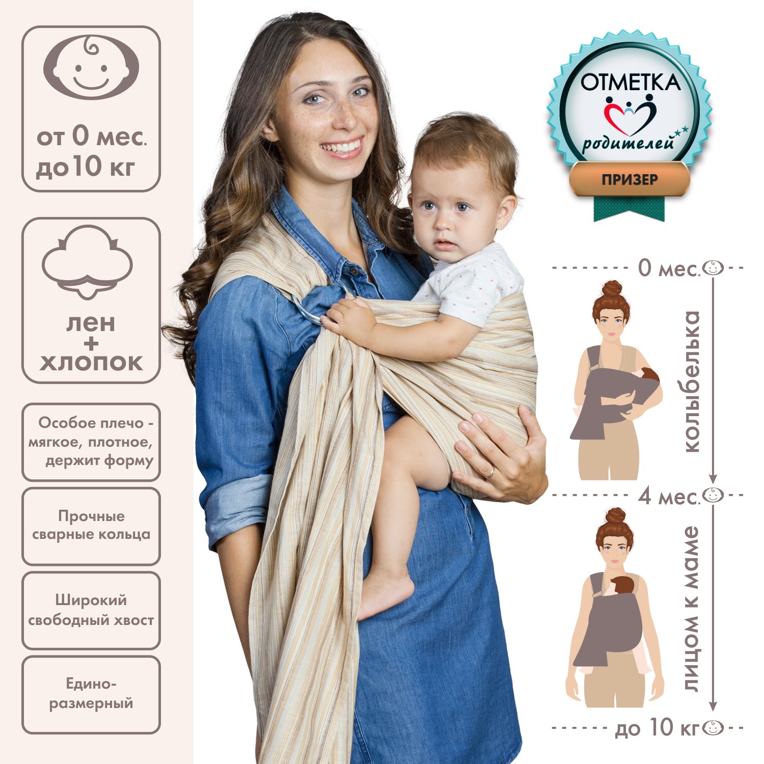 Слинг с кольцами Чудо-чадо «Лино Коктейль» бежевый лен/хлопок СКК04-000