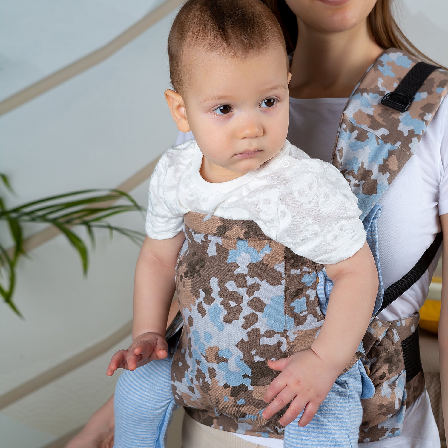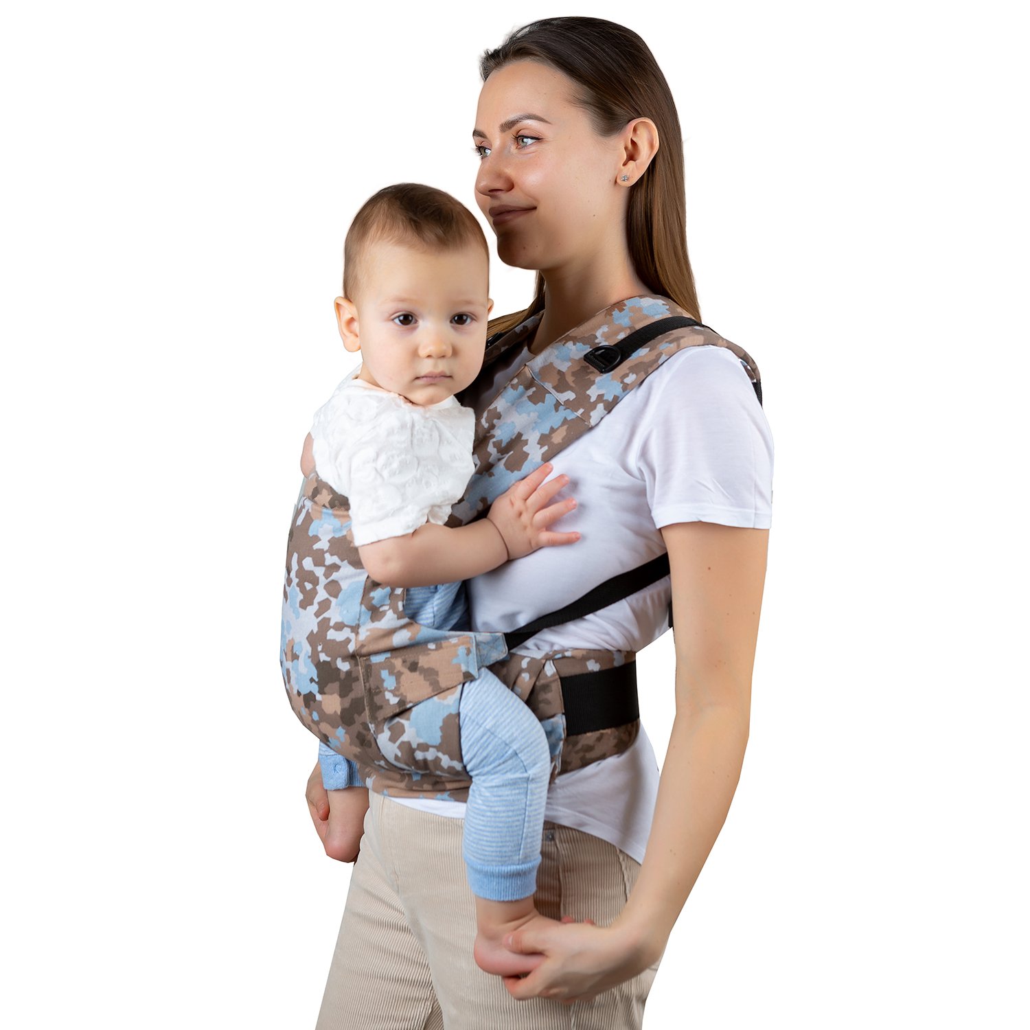 Слинг-рюкзак Чудо-чадо переноска для детей Бебимобиль Лайк камуфляжный шоколад/голубой ЛСР01-006